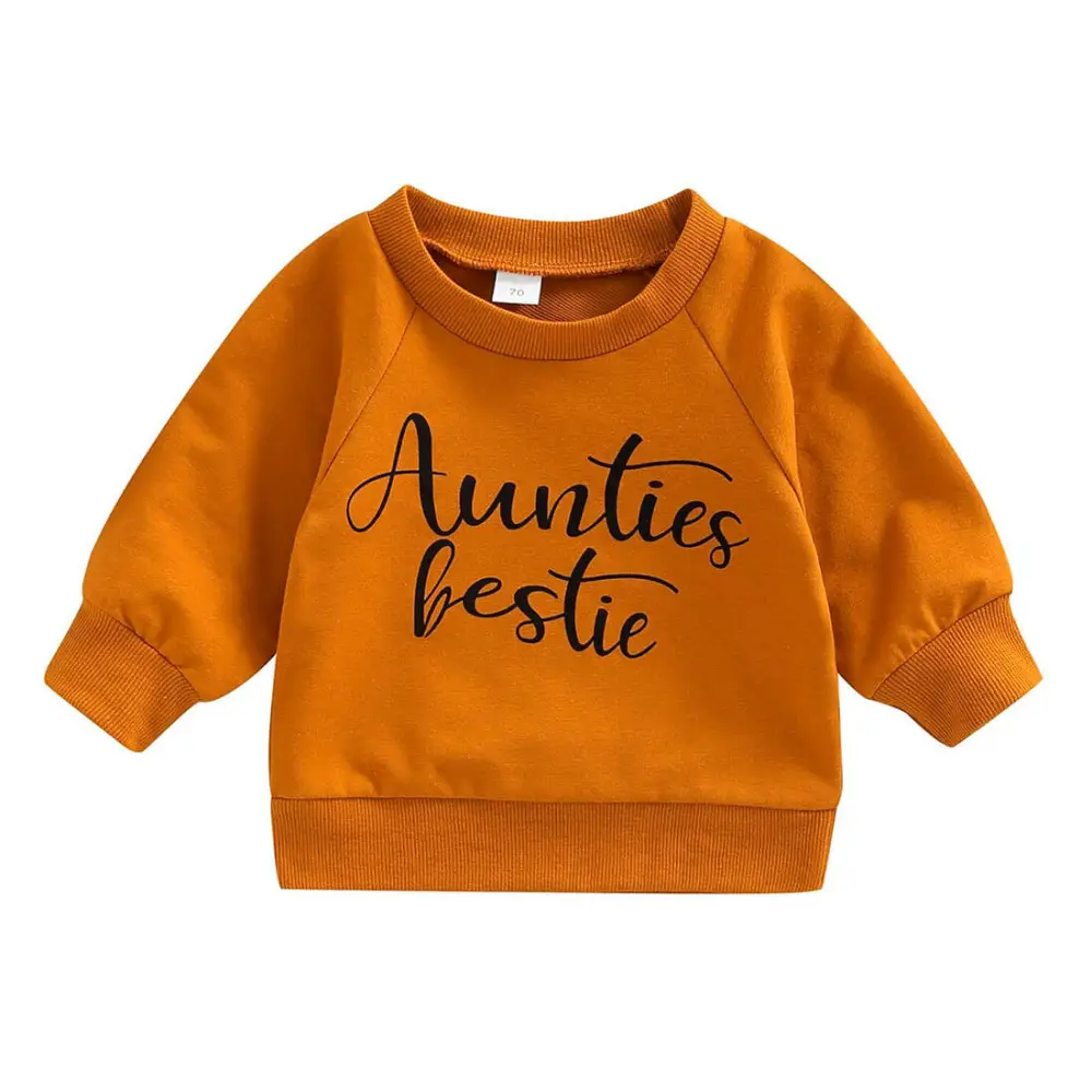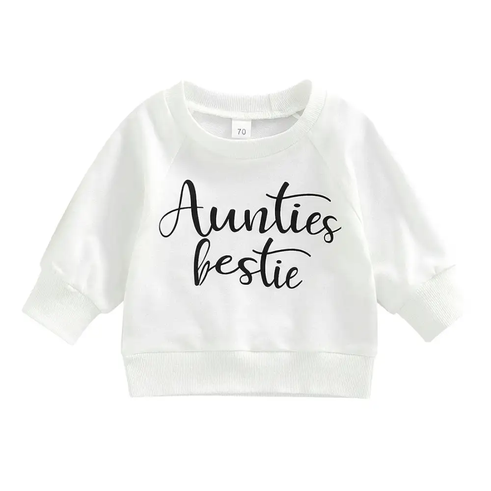 This charming "Aunties Bestie" sweatshirt is designed to fit babies perfectly and celebrate the unique relationship between a baby and their adored aunt. Crafted from plush and comfy material, this baby sweatshirt ensures not only the coziness your little one requires but also adds a touch of style and fun. The classic "Aunties Bestie" inscription makes this sweatshirt an all-season wardrobe essential for your baby.
