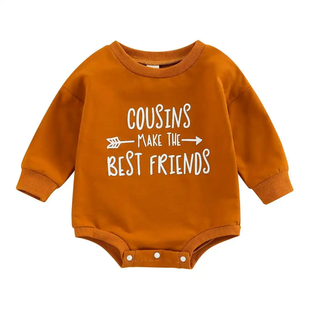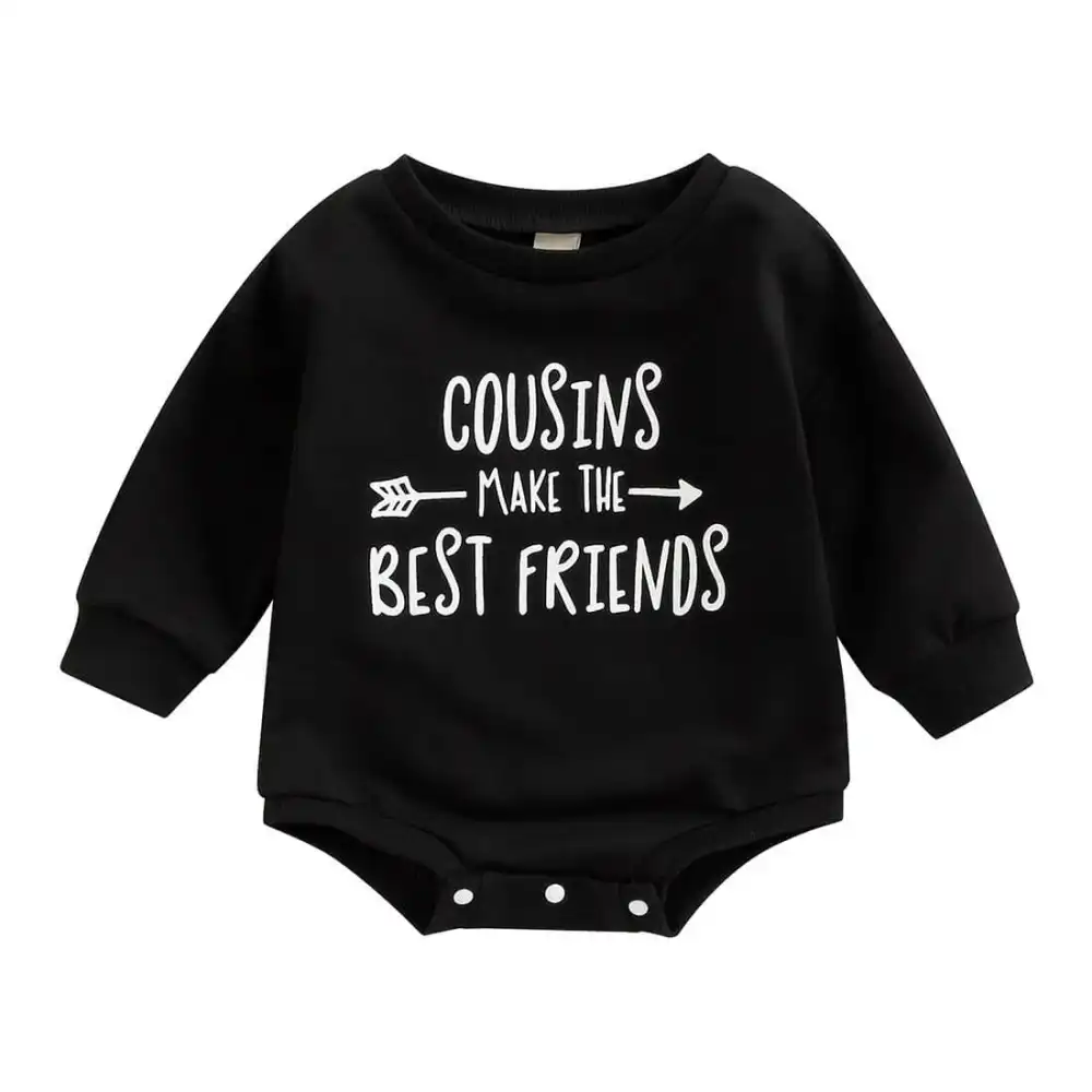 This adorable unisex baby bodysuit features the cute lettering "Cousins make the best friends". The bodysuit is designed with long sleeves to keep your little one warm and cozy, and it's made with high-quality cotton for ultimate comfort. The easy-to-use snap closures make for hassle-free diaper changes, and the soft fabric ensures that your baby is comfortable all day long.