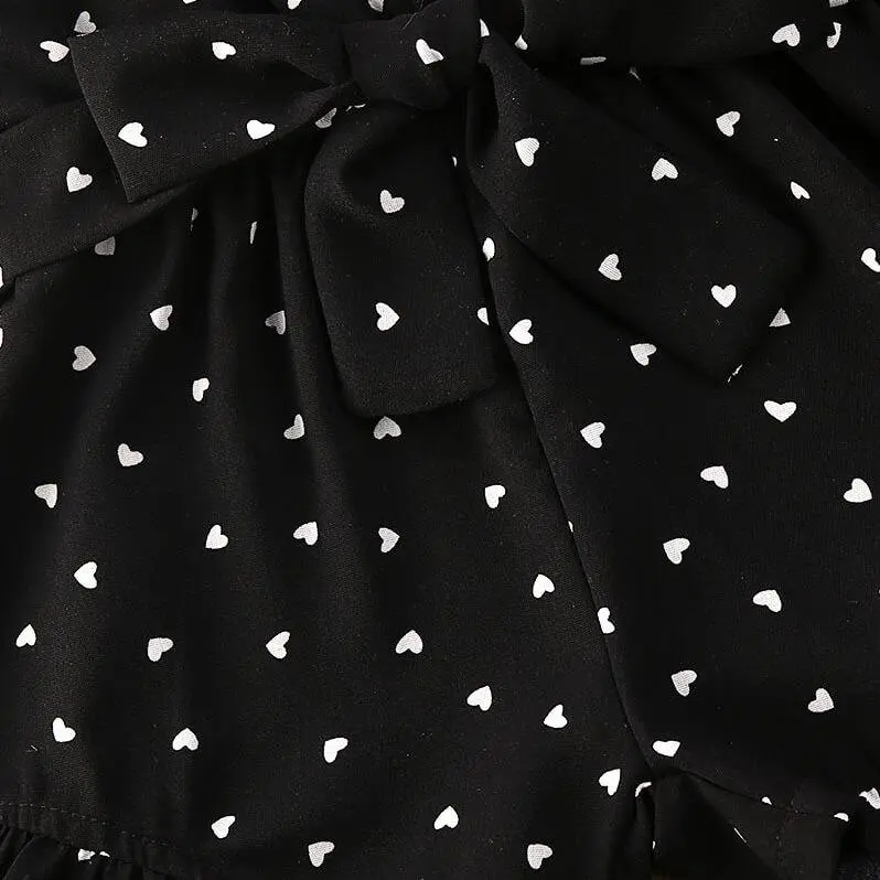 This romper is the perfect addition to your baby's wardrobe! Made from high-quality fabric, this romper is soft, comfortable, and stylish. The black hearts print is eye-catching and fun, making it perfect for any occasion. Whether you're dressing your baby for playtime or a special event, this romper is sure to be a hit!