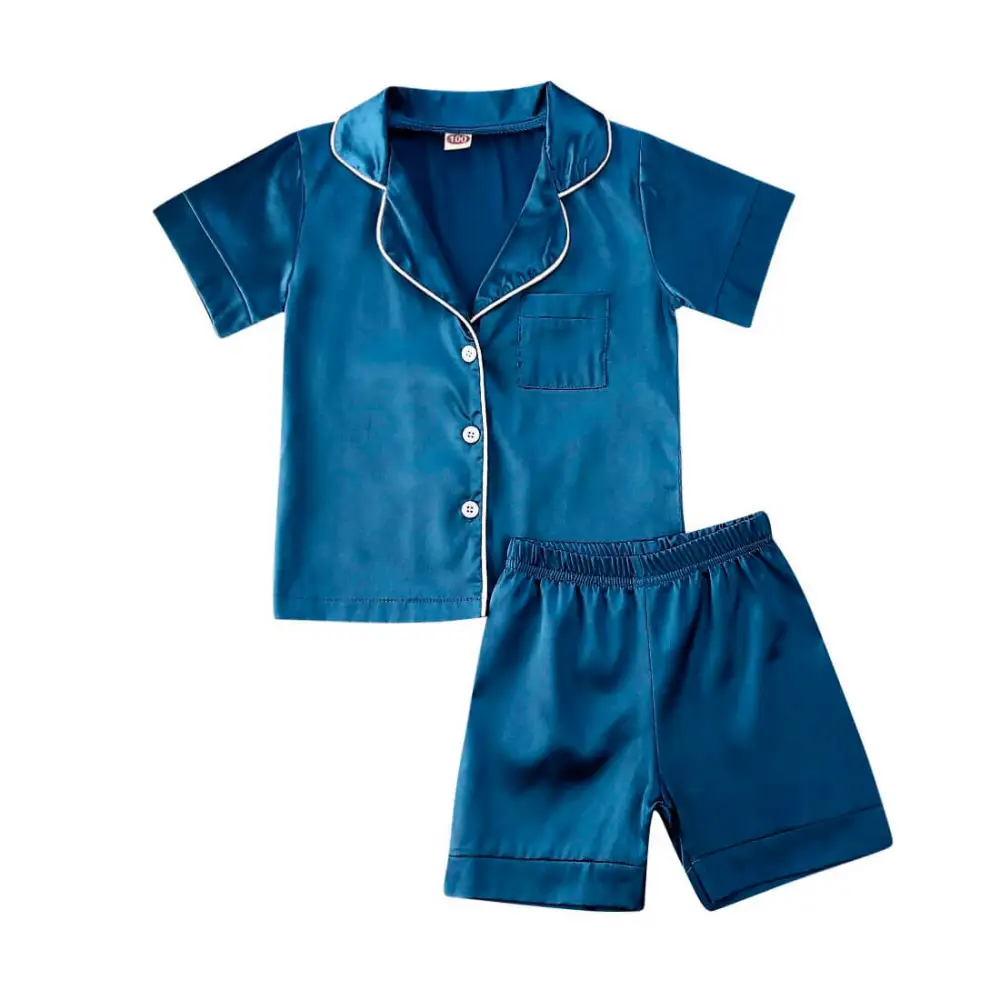 Get your little one ready for a cozy night's sleep with this adorable toddler girl pajama set. It includes a short sleeve shirt in a stylish shade of blue, featuring a stylish collar for added charm. The matching shorts complete the set, providing a coordinated look with their matching blue color.