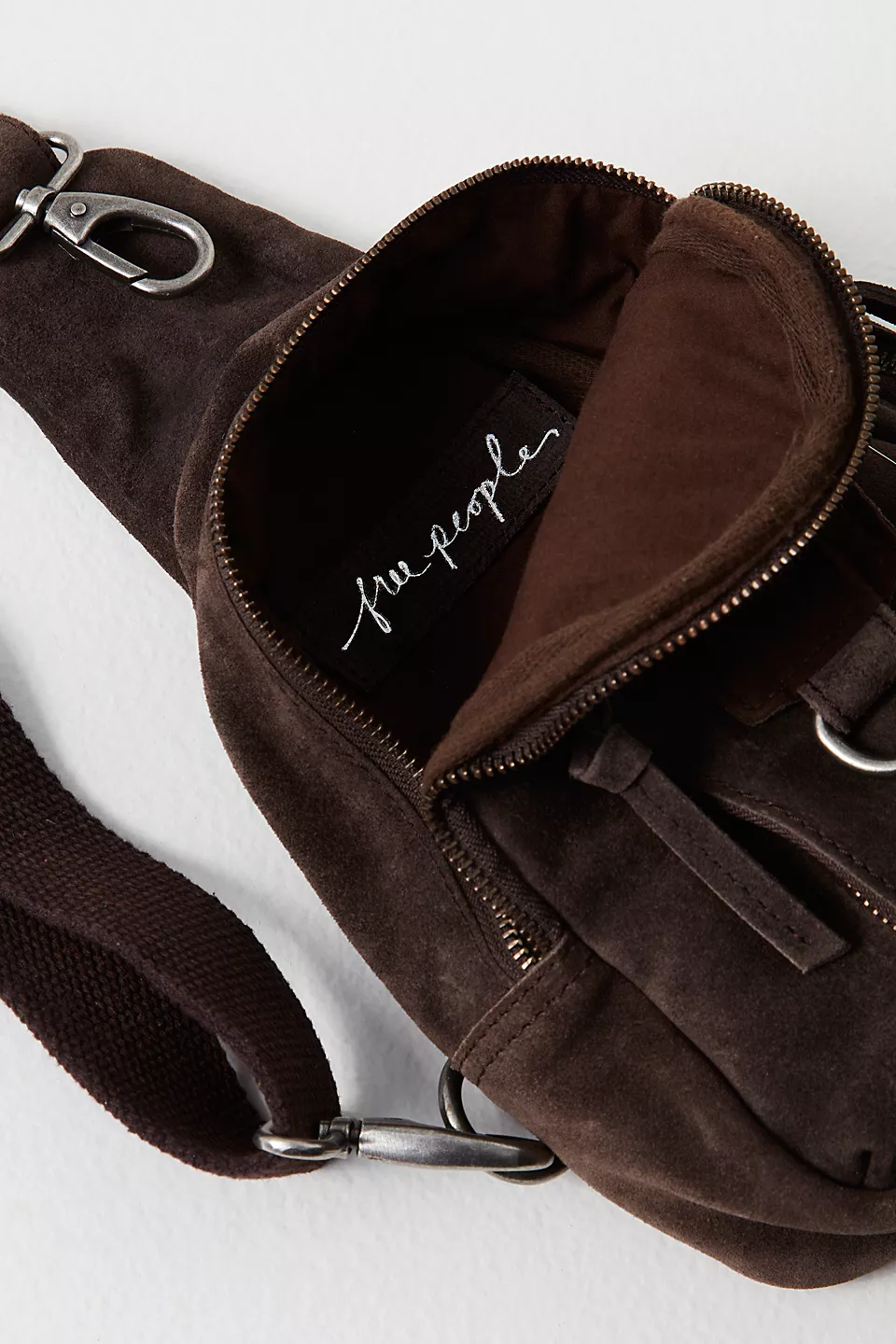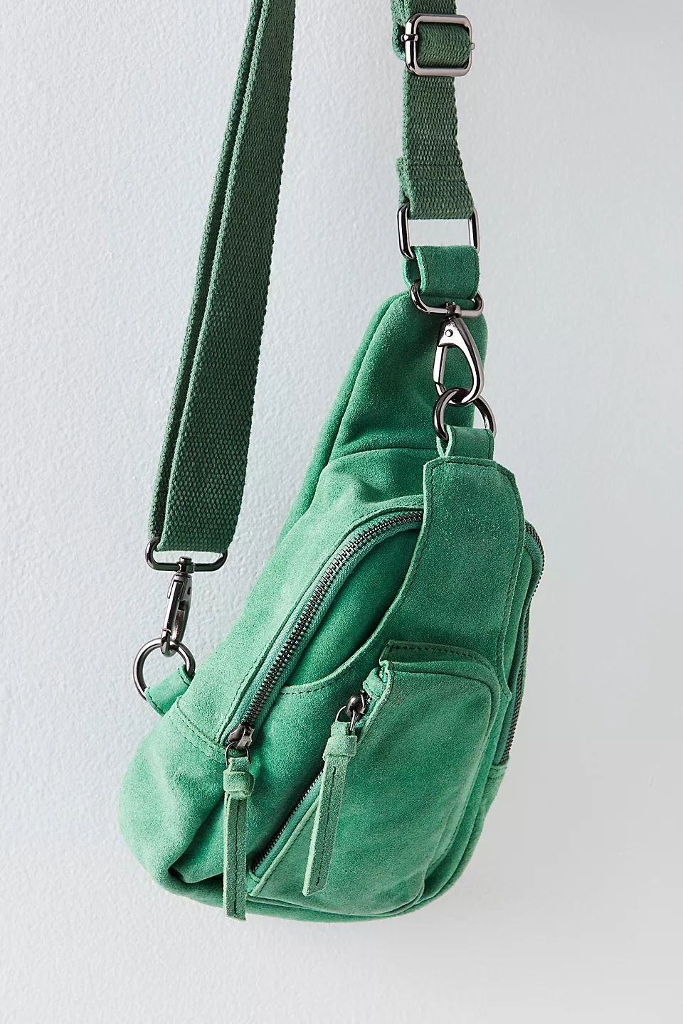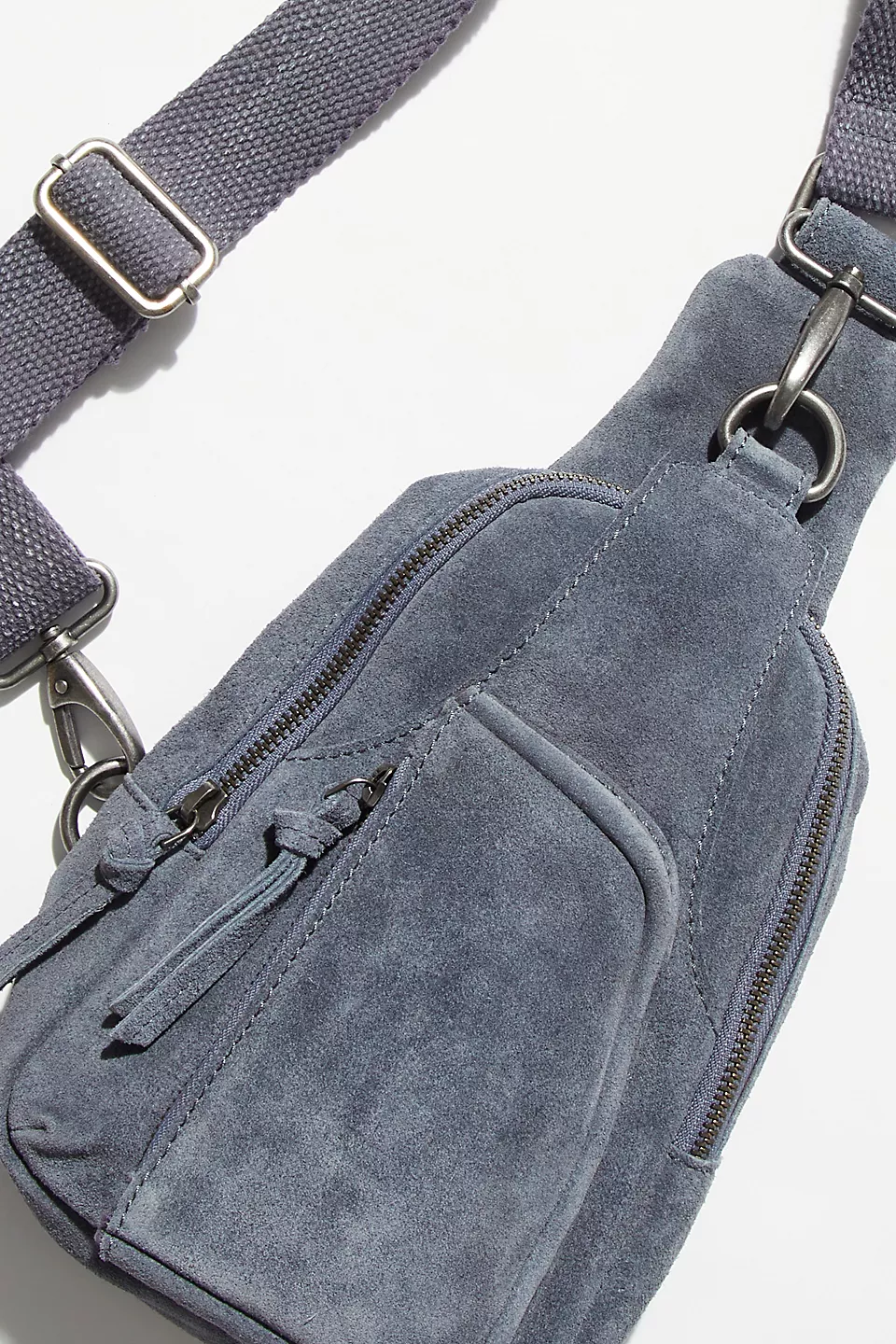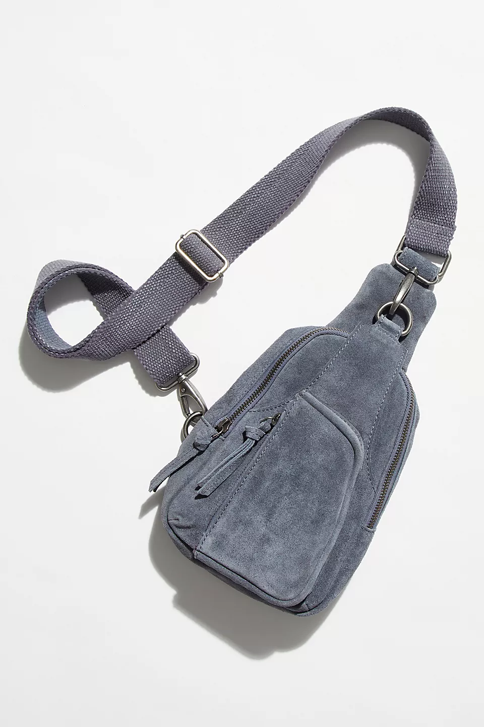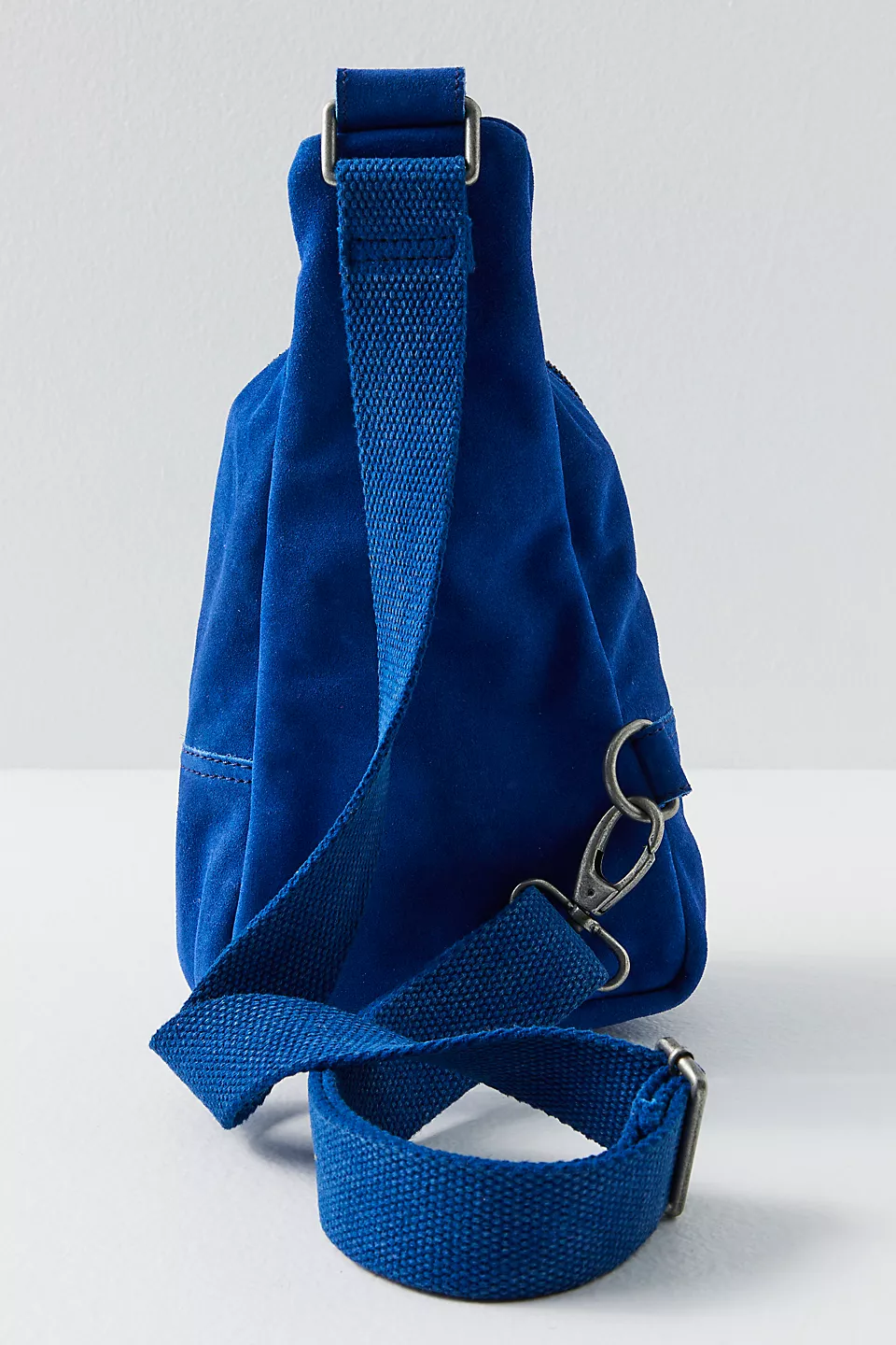 Shoulder the load with an of-the-moment sling bag, featured in a soft, velvety suede that is intentionally hand-finished.
