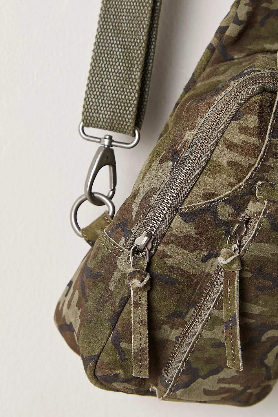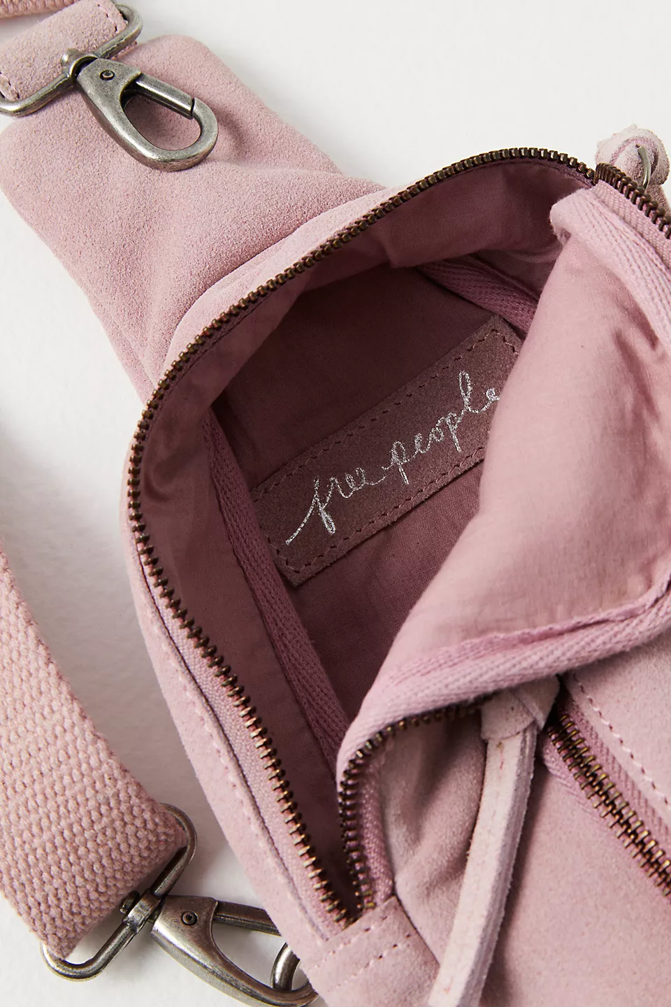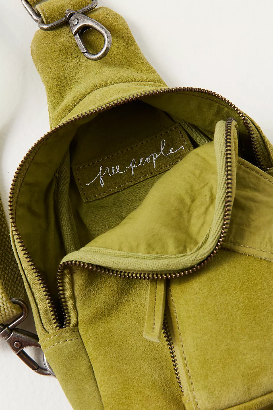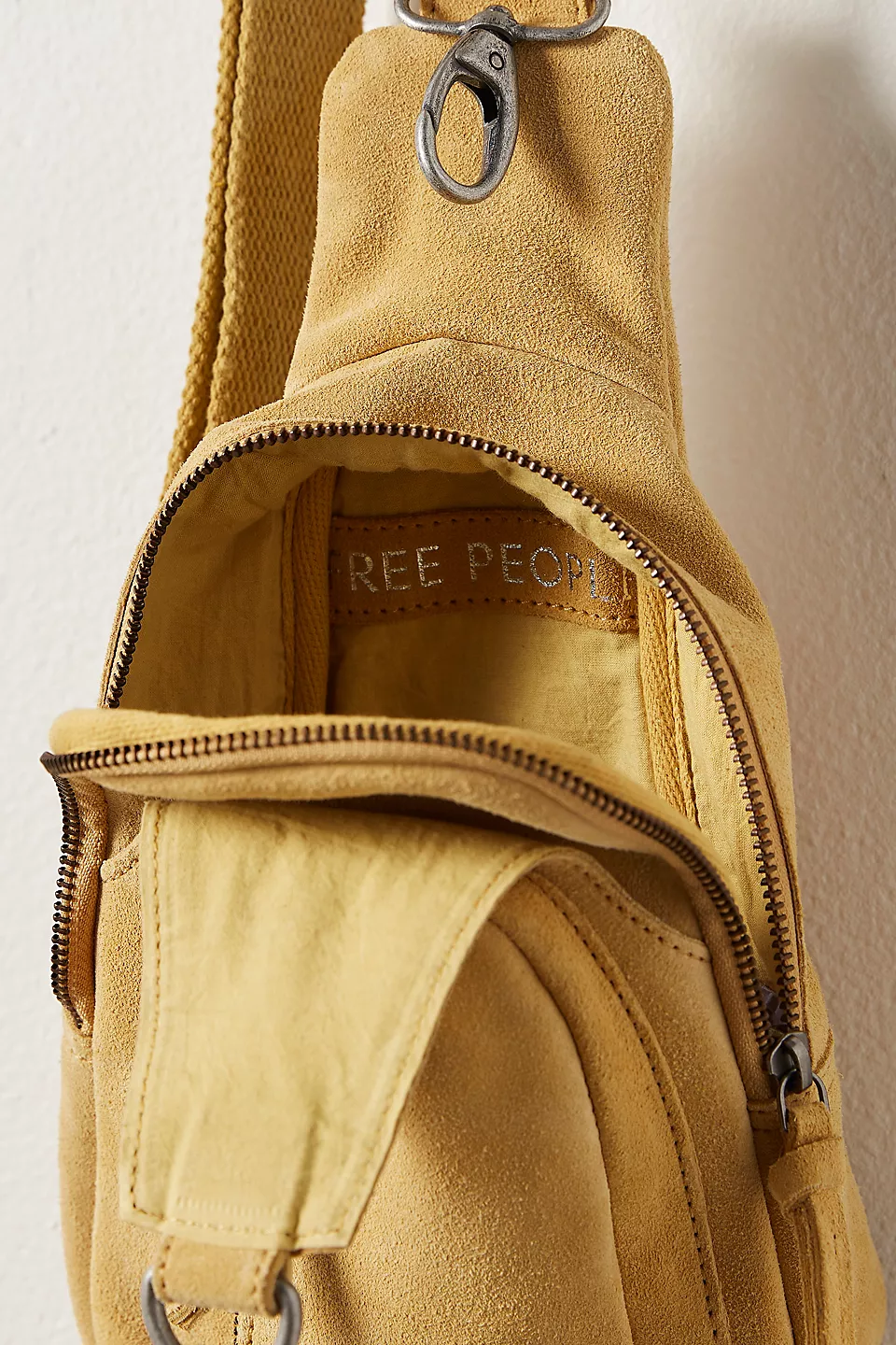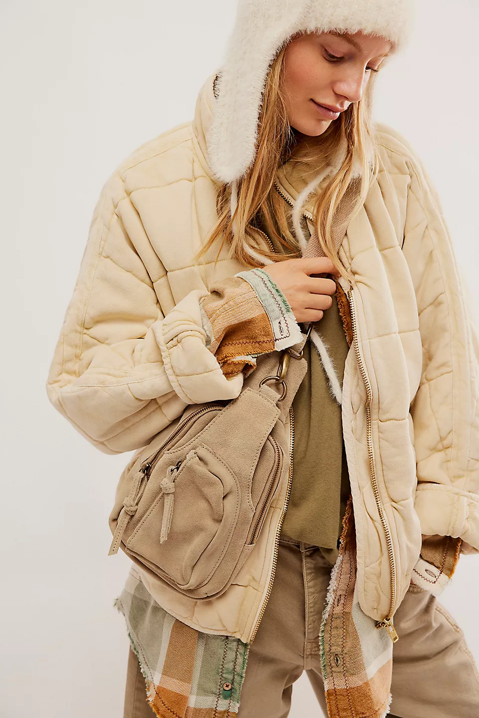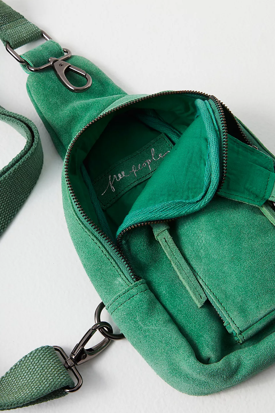 Shoulder the load with an of-the-moment sling bag, featured in a soft, velvety suede that is intentionally hand-finished.