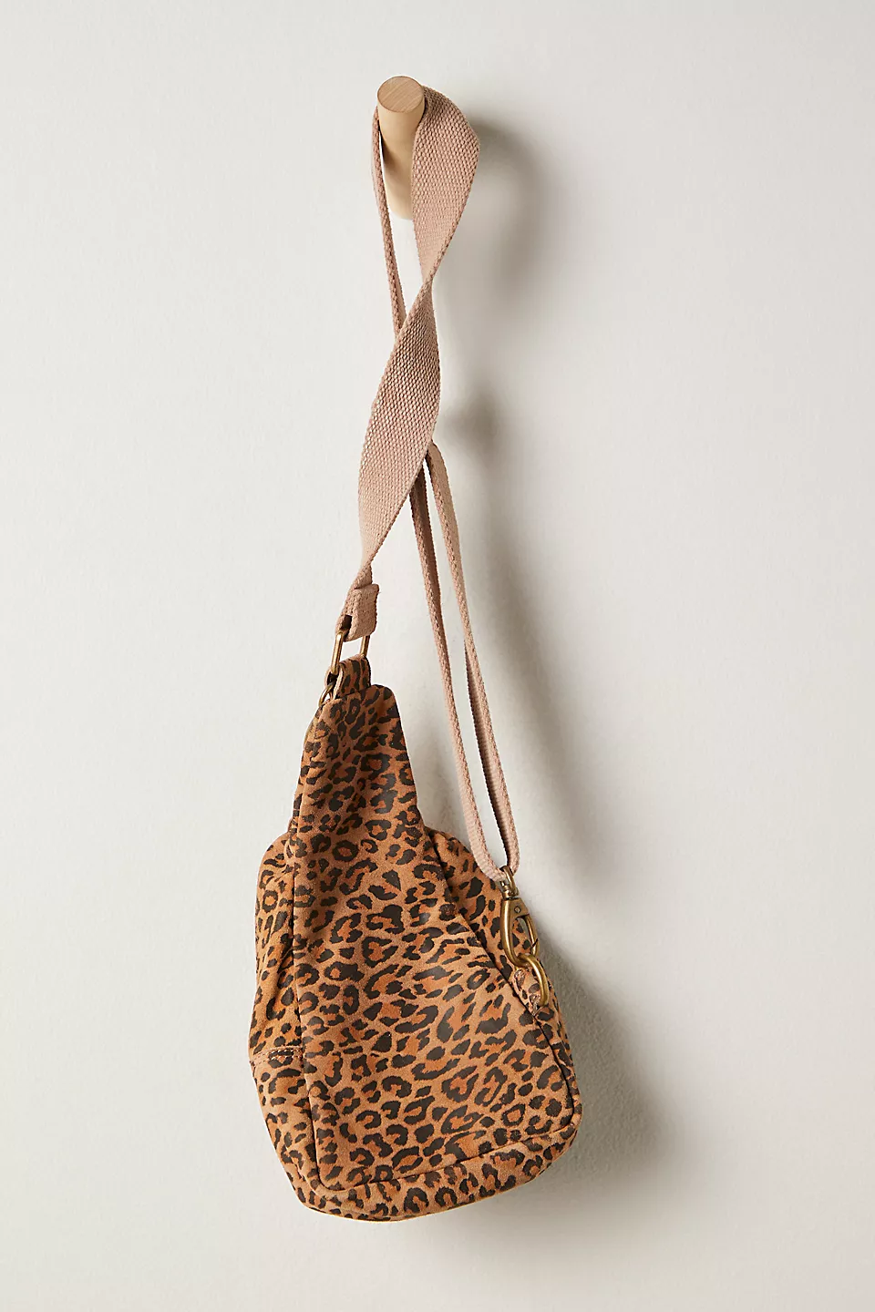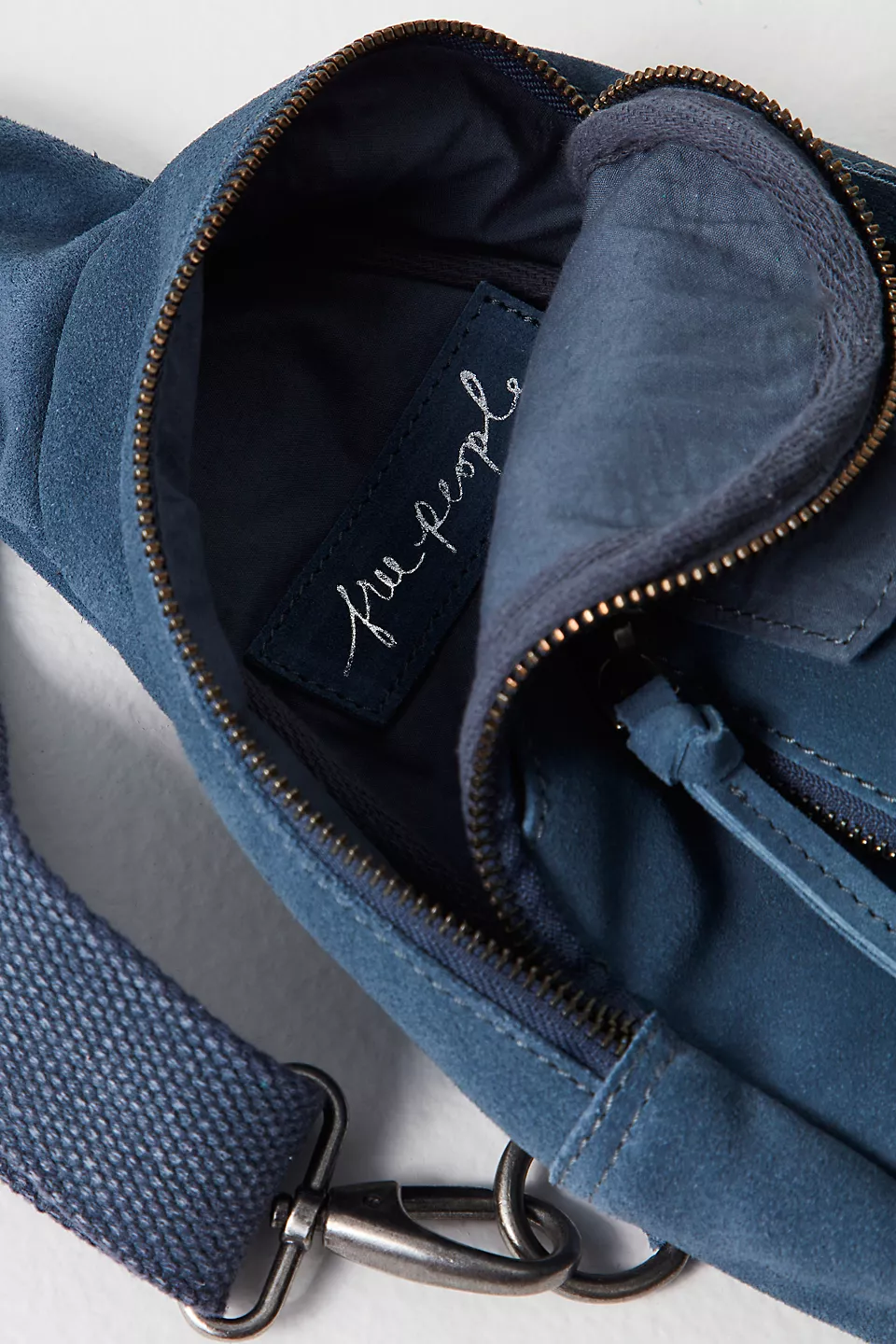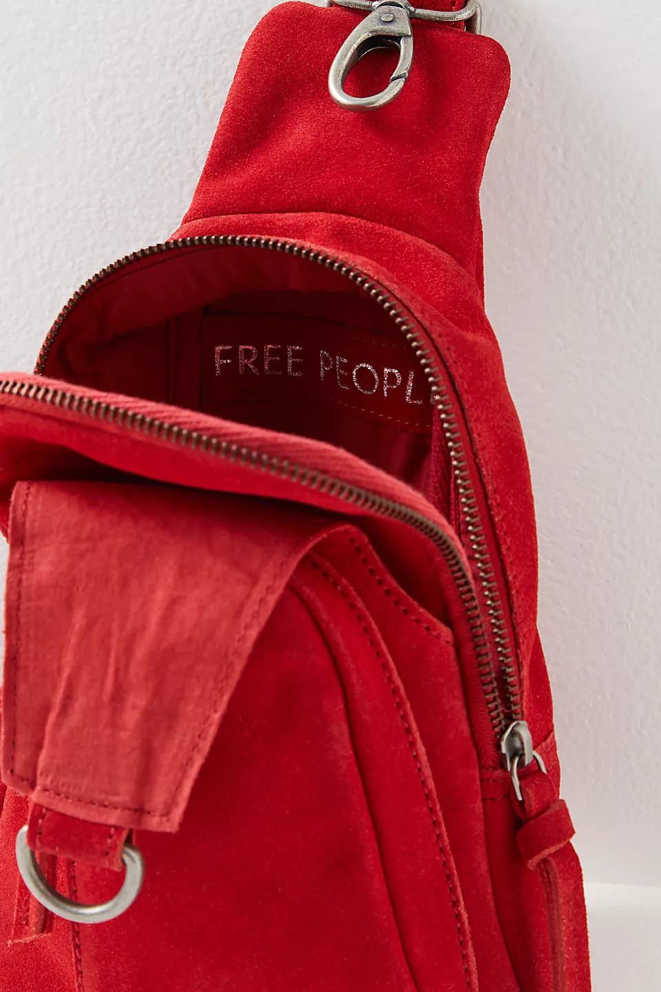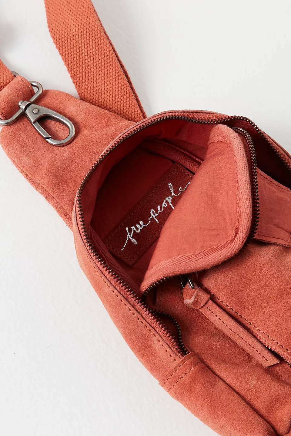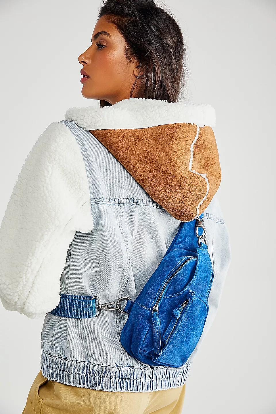 Shoulder the load with an of-the-moment sling bag, featured in a soft, velvety suede that is intentionally hand-finished.