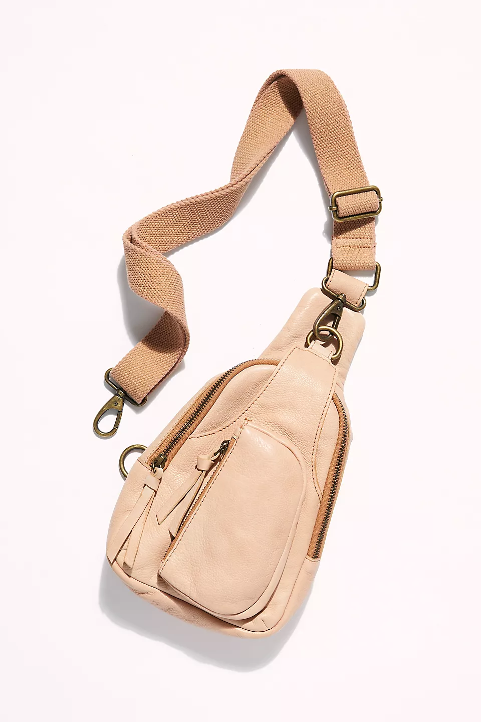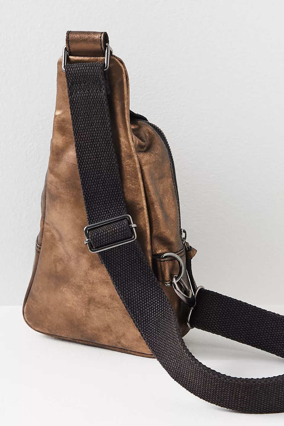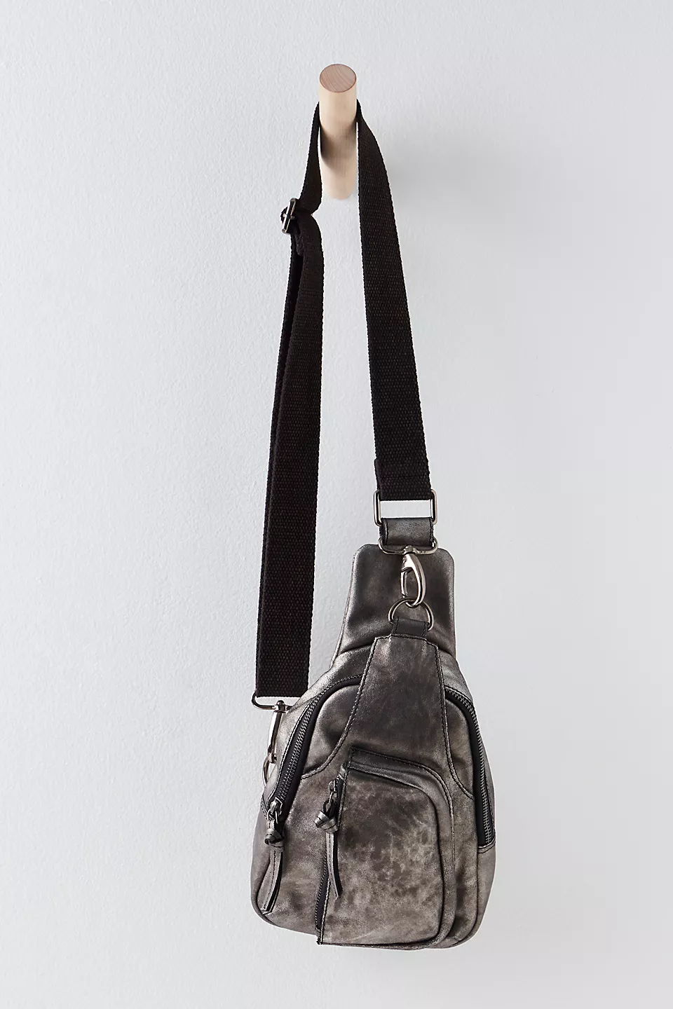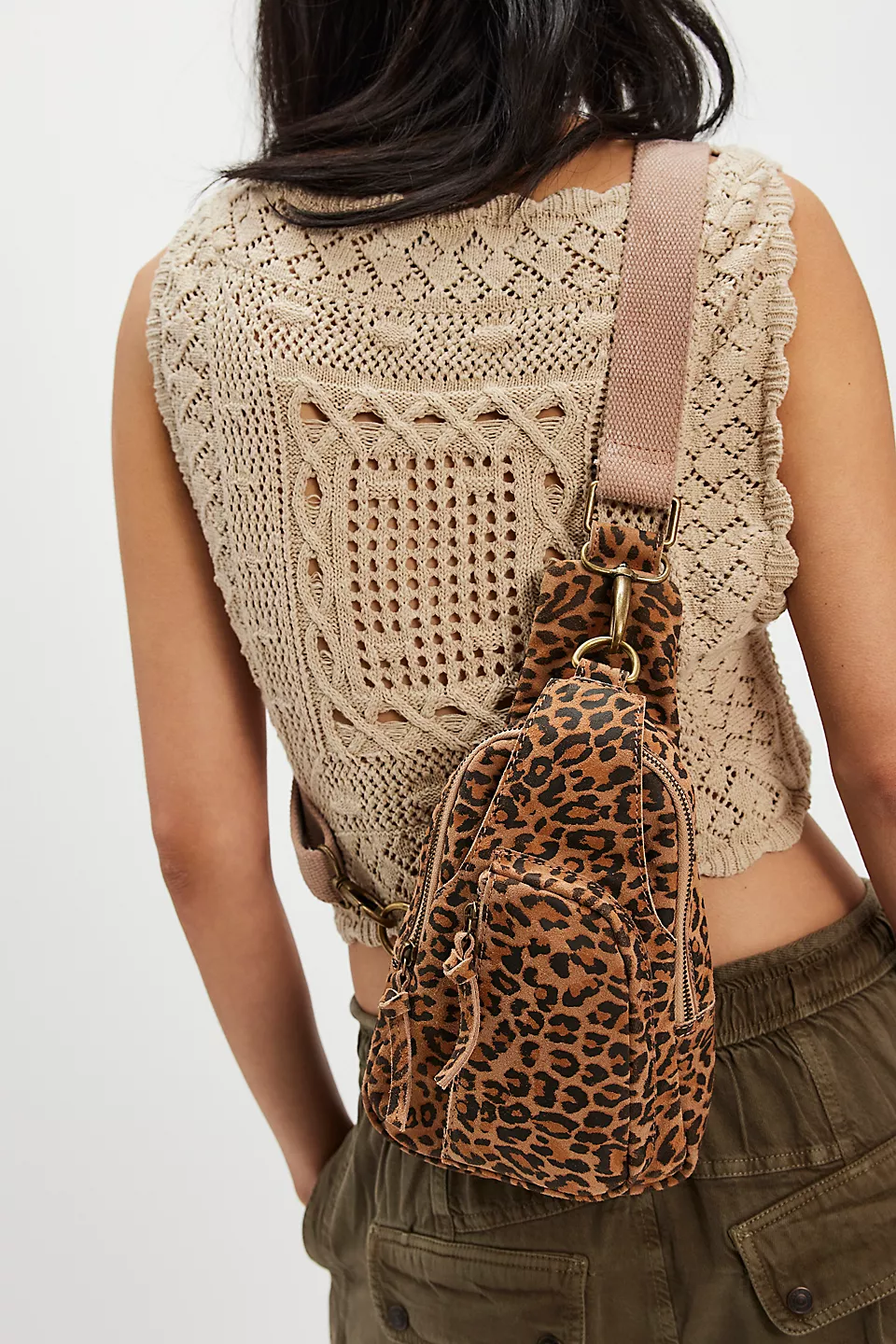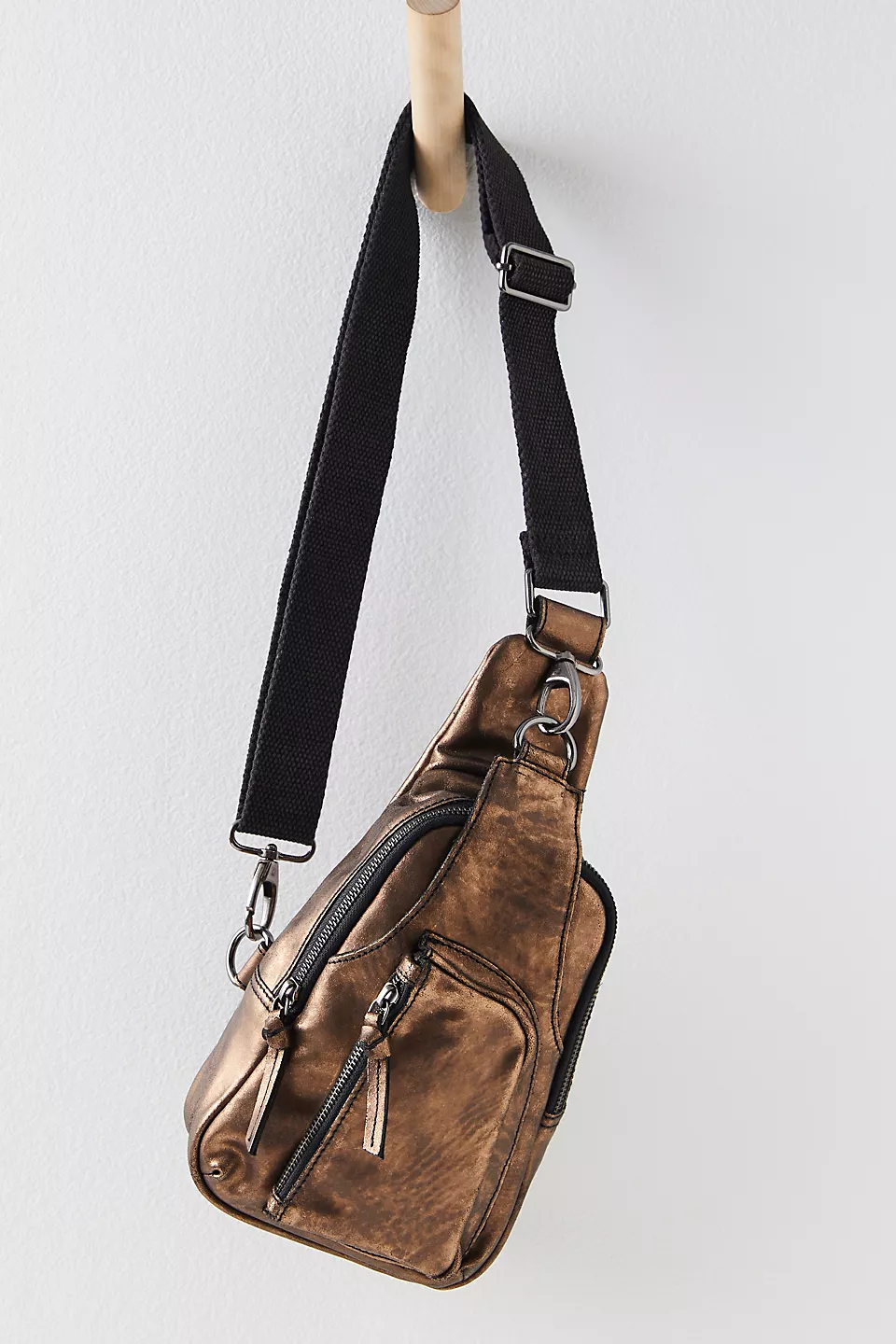 Shoulder the load with an of-the-moment sling bag, featured in a soft, velvety suede that is intentionally hand-finished.