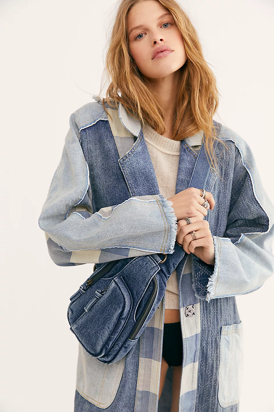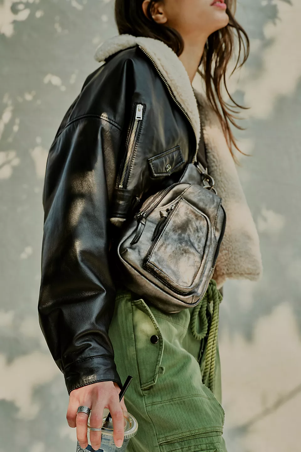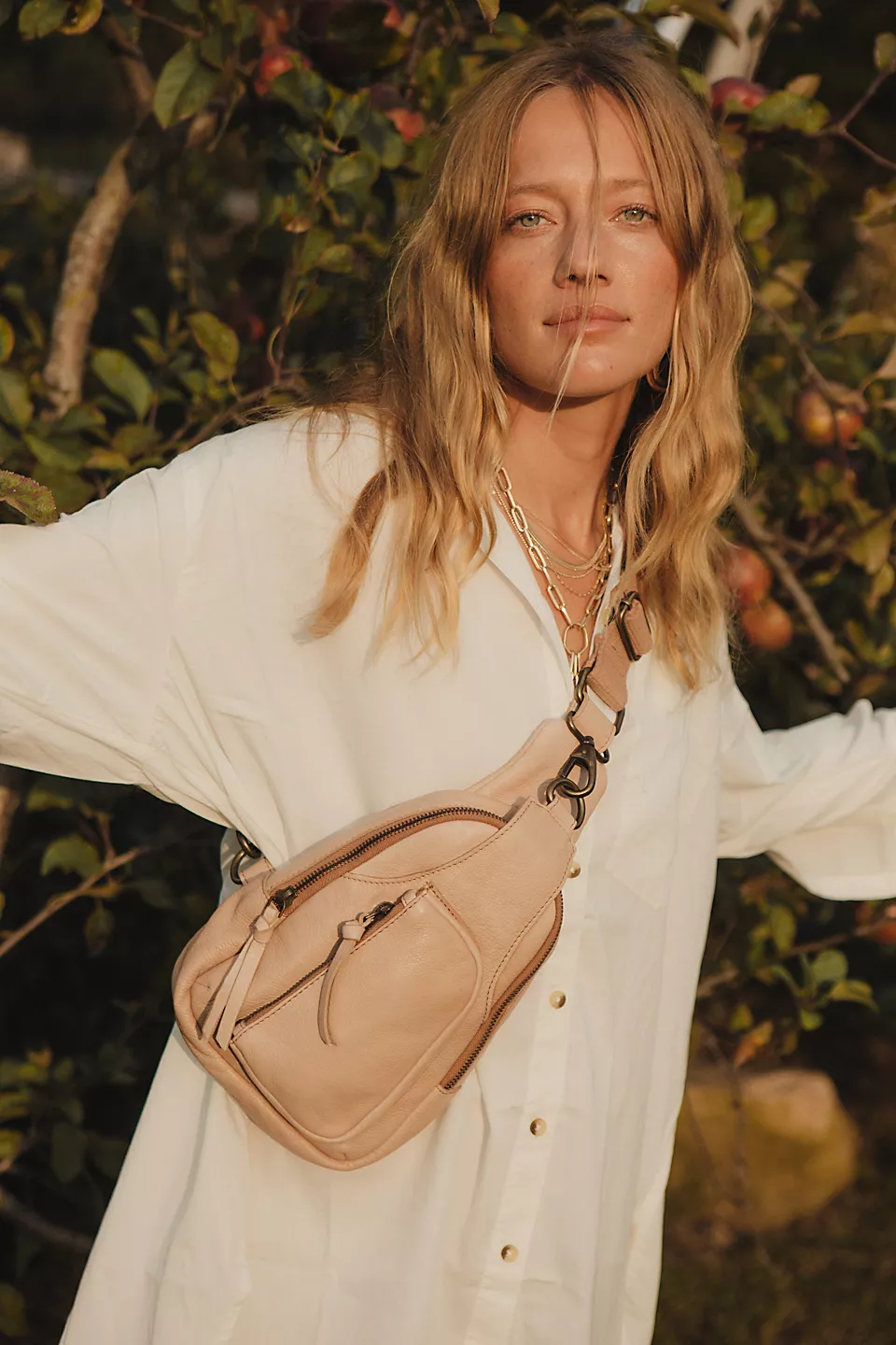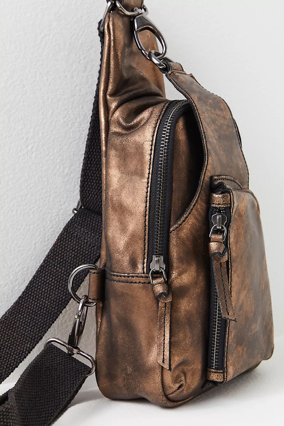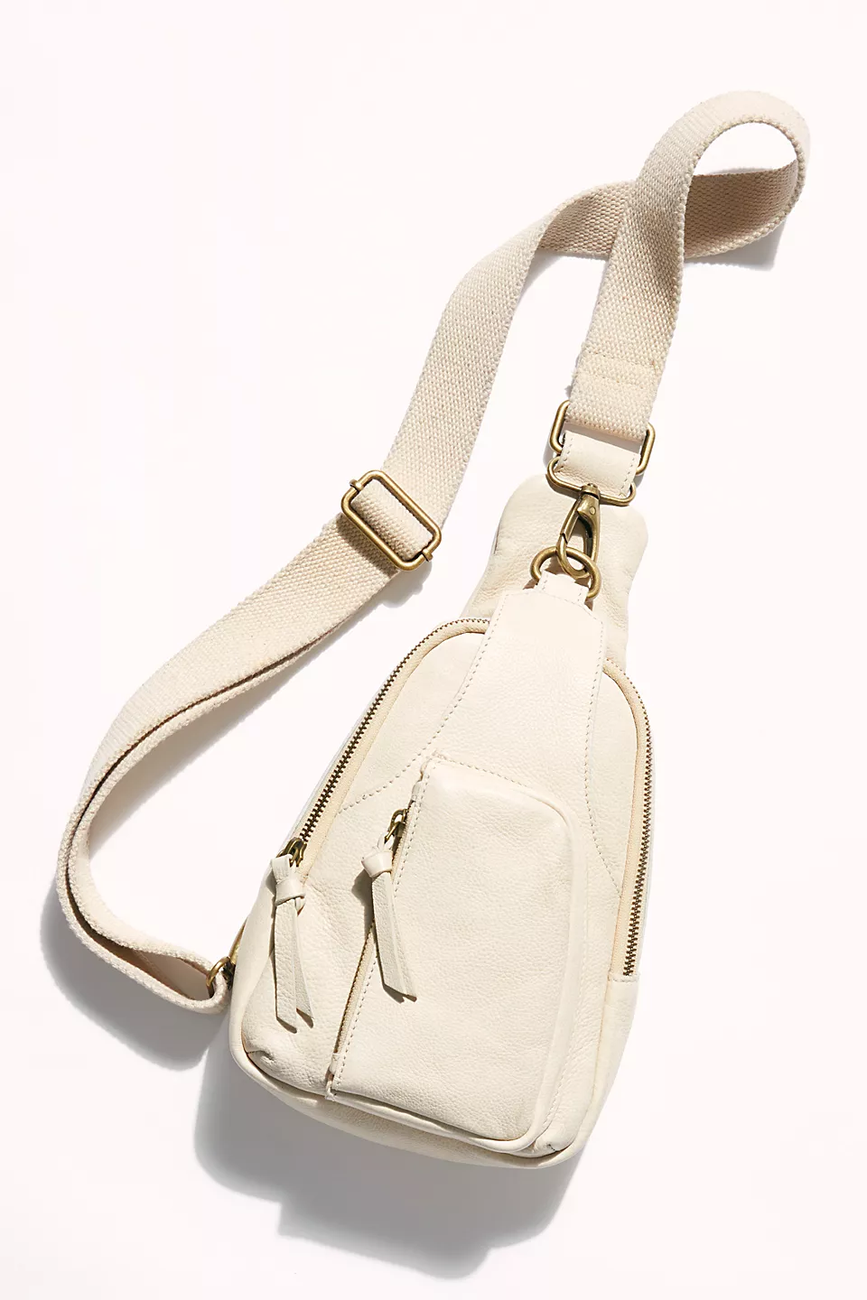 Shoulder the load with an of-the-moment sling bag, featured in a soft, velvety suede that is intentionally hand-finished.