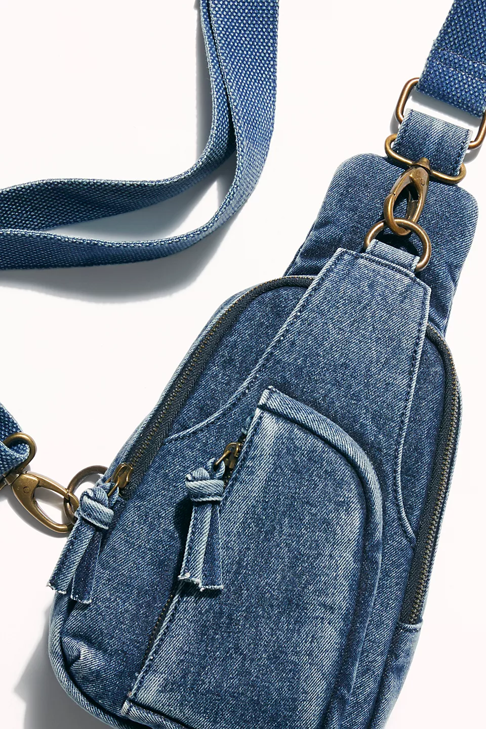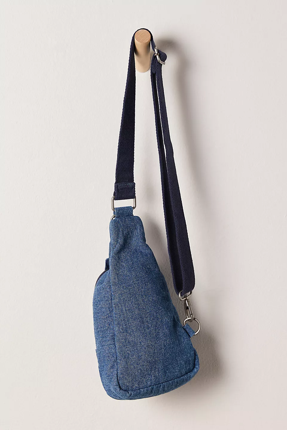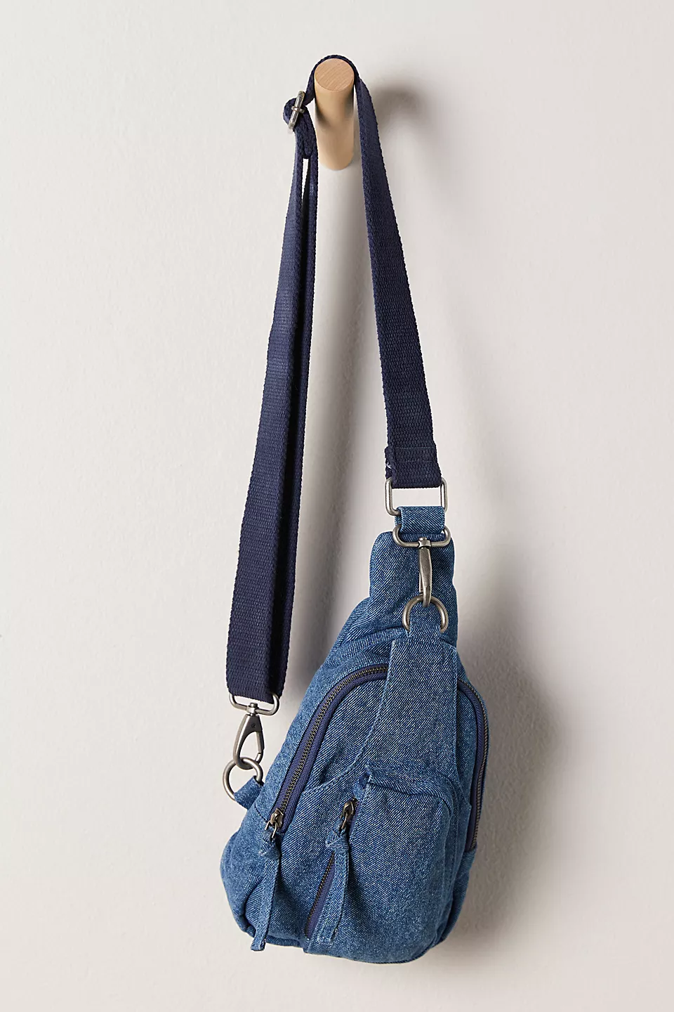 Features: Sling style, suede fabrication, adjustable woven strap, outer pocket