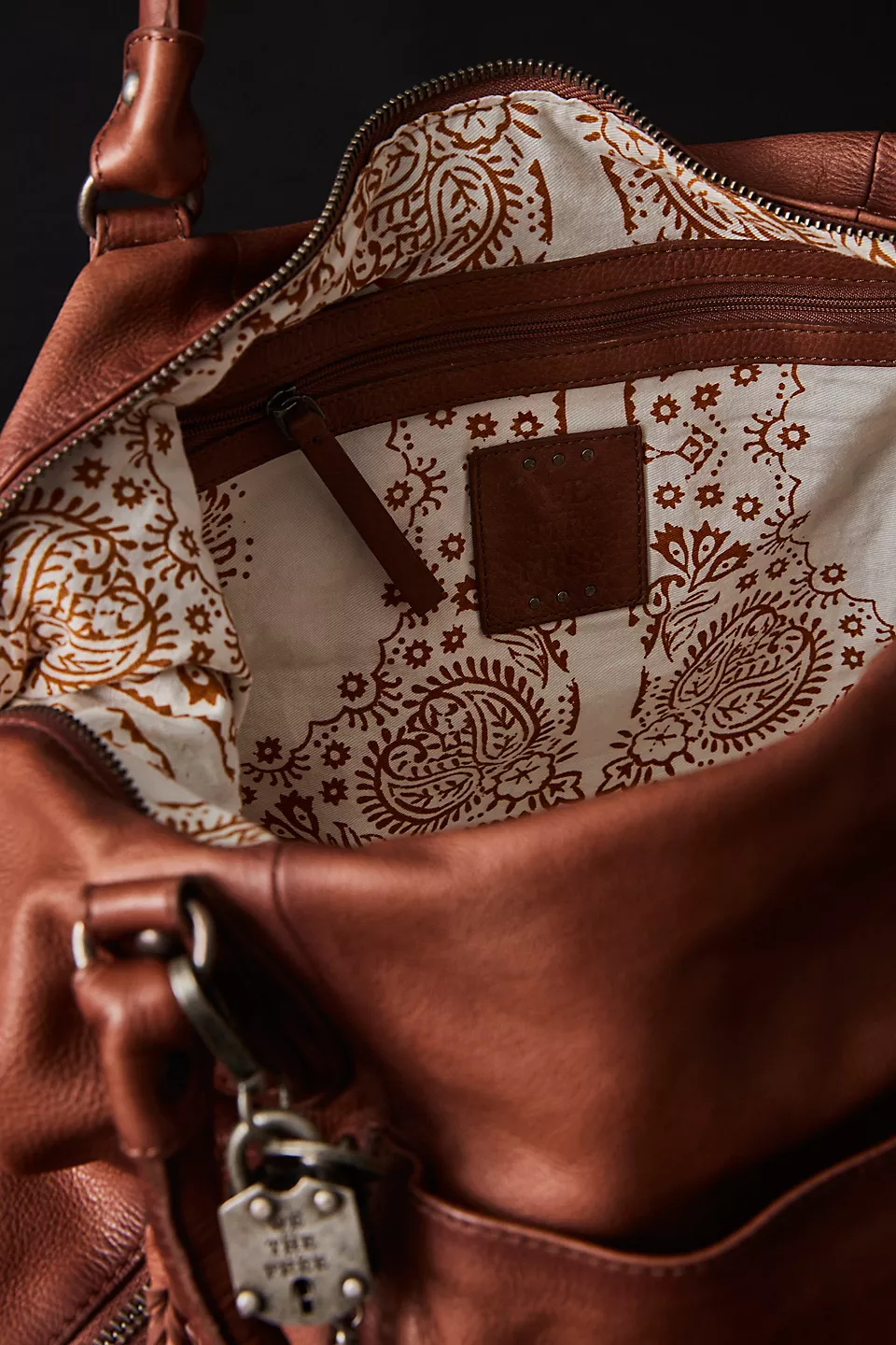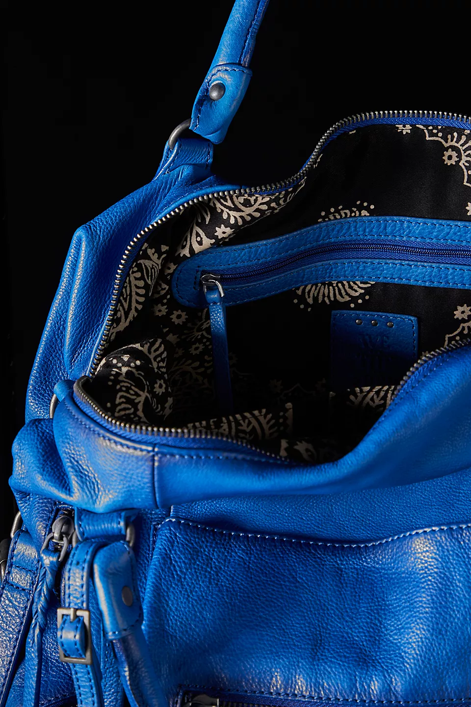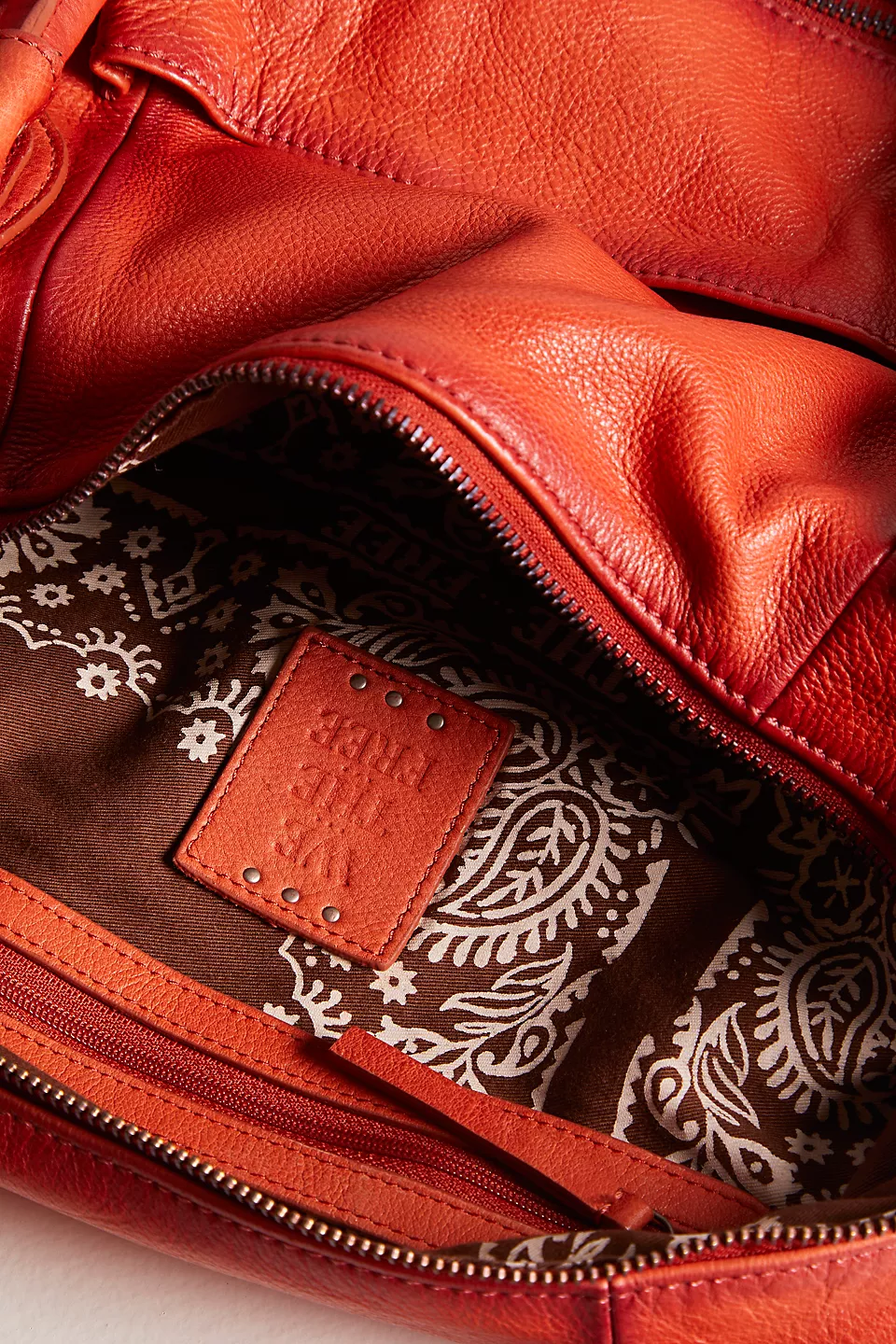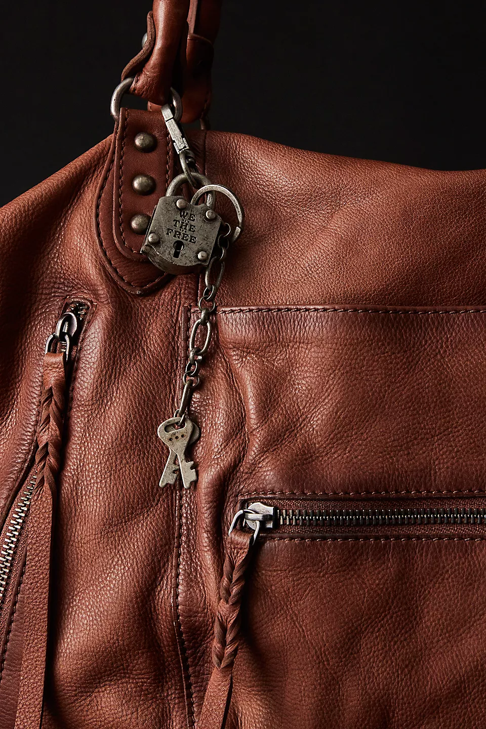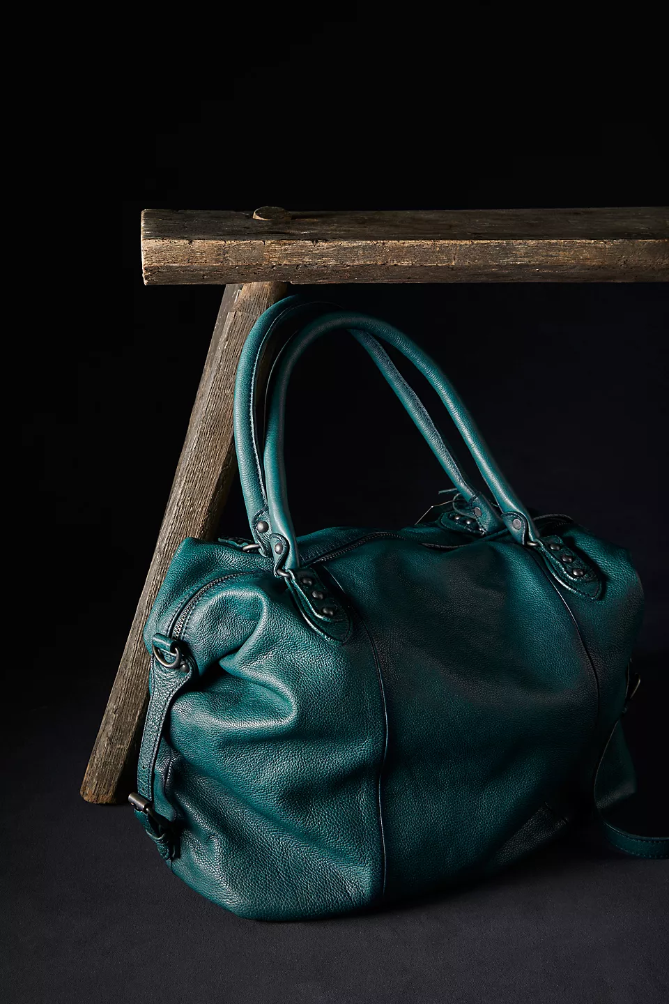 Features: Slouchy style, spacious interior, worn leather fabrication, exterior zipper compartments, exterior and interior pockets, buckle details, two top handles, detachable and adjustable shoulder strap, zipper closure, branded tag