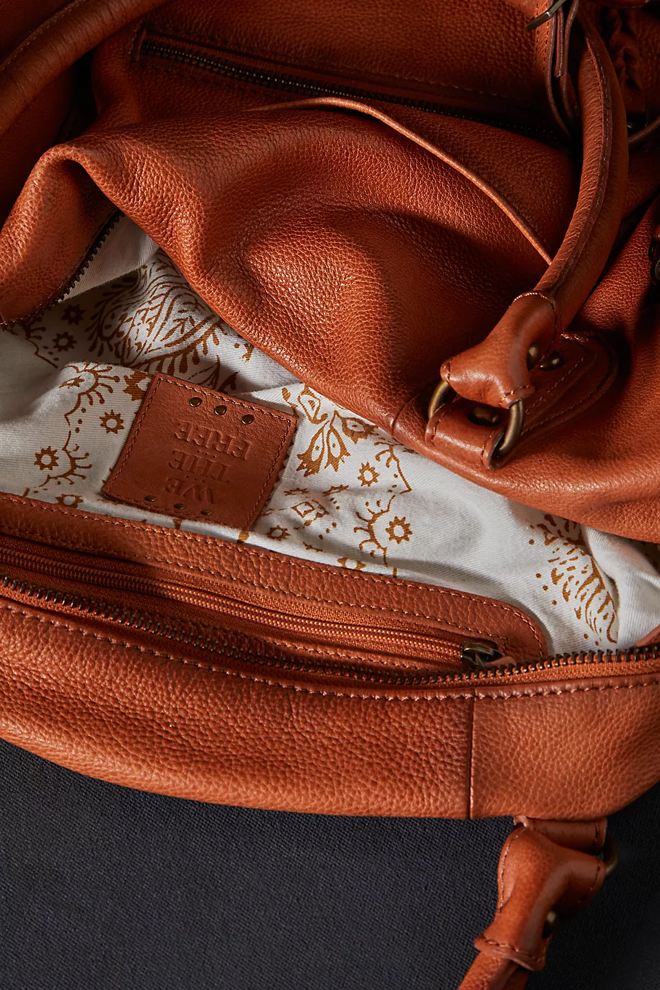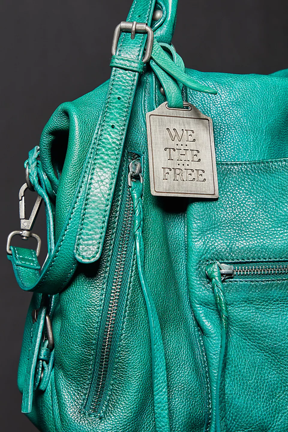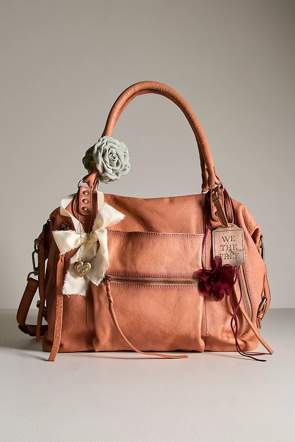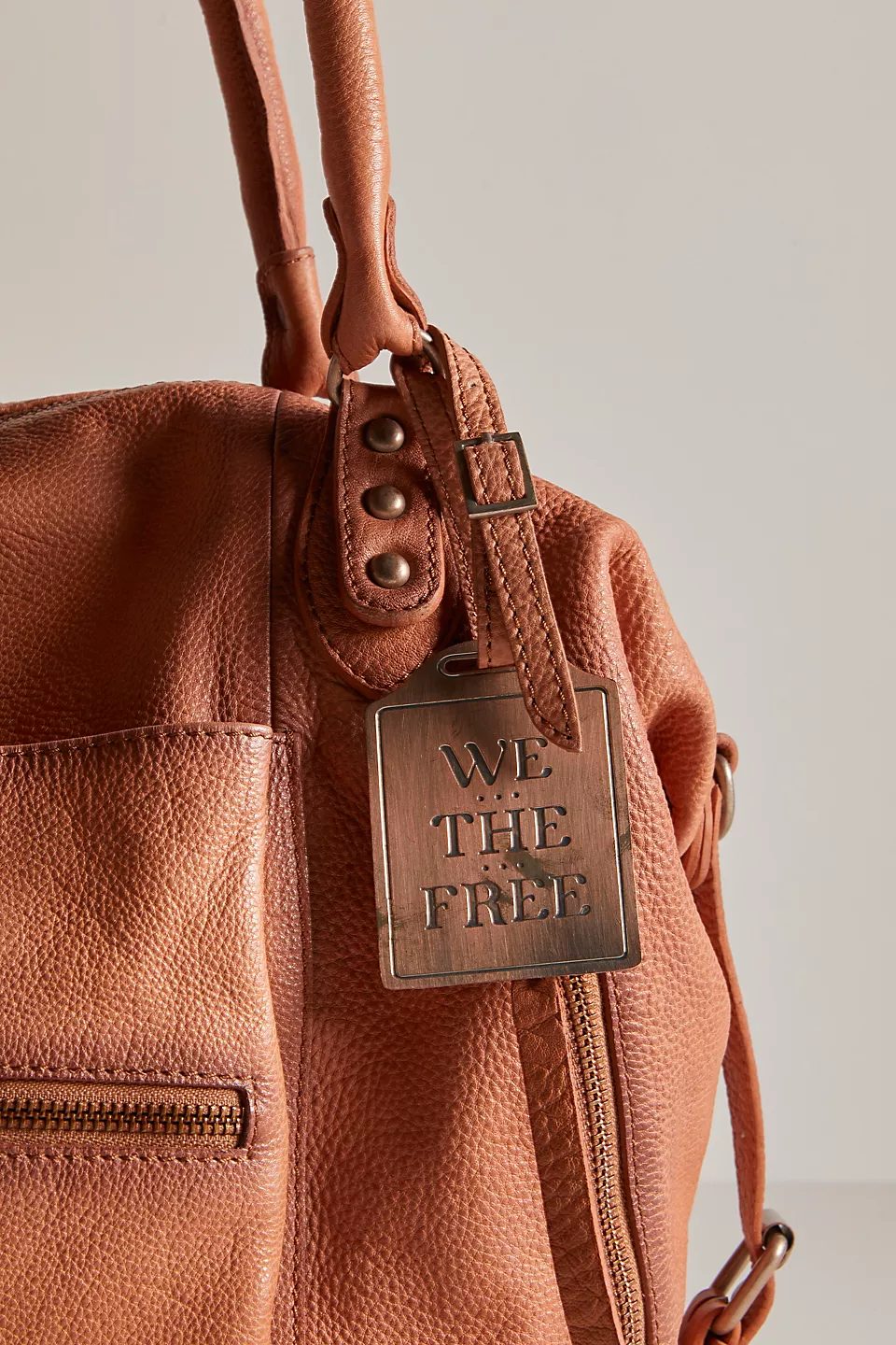 Features: Slouchy style, spacious interior, worn leather fabrication, exterior zipper compartments, exterior and interior pockets, buckle details, two top handles, detachable and adjustable shoulder strap, zipper closure, branded tag