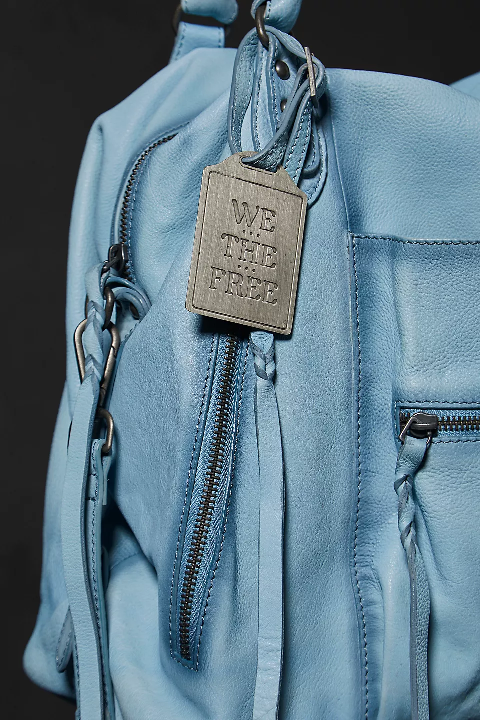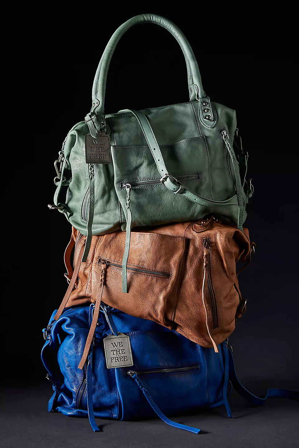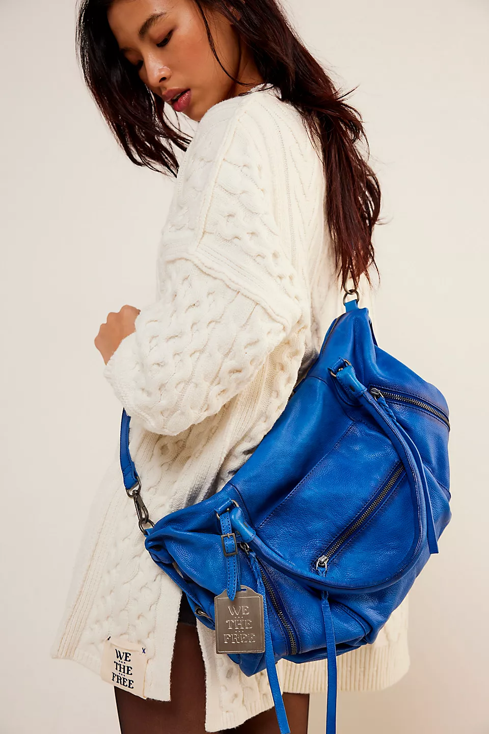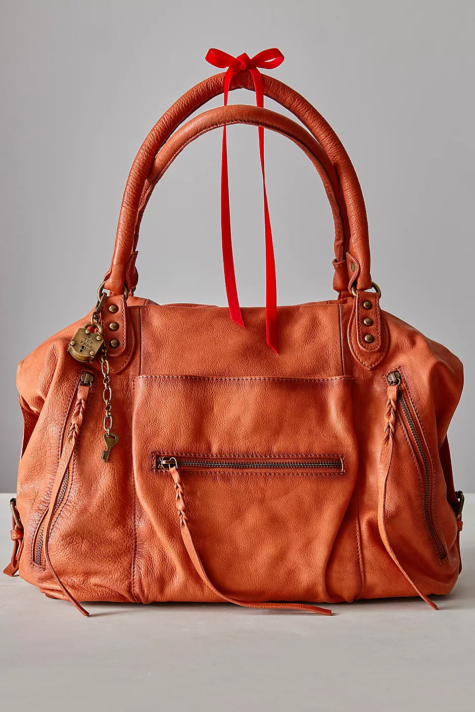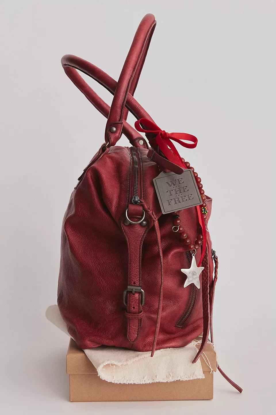 Features: Slouchy style, spacious interior, worn leather fabrication, exterior zipper compartments, exterior and interior pockets, buckle details, two top handles, detachable and adjustable shoulder strap, zipper closure, branded tag