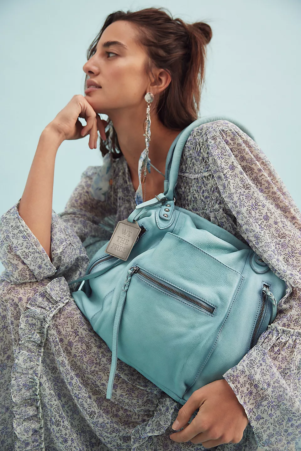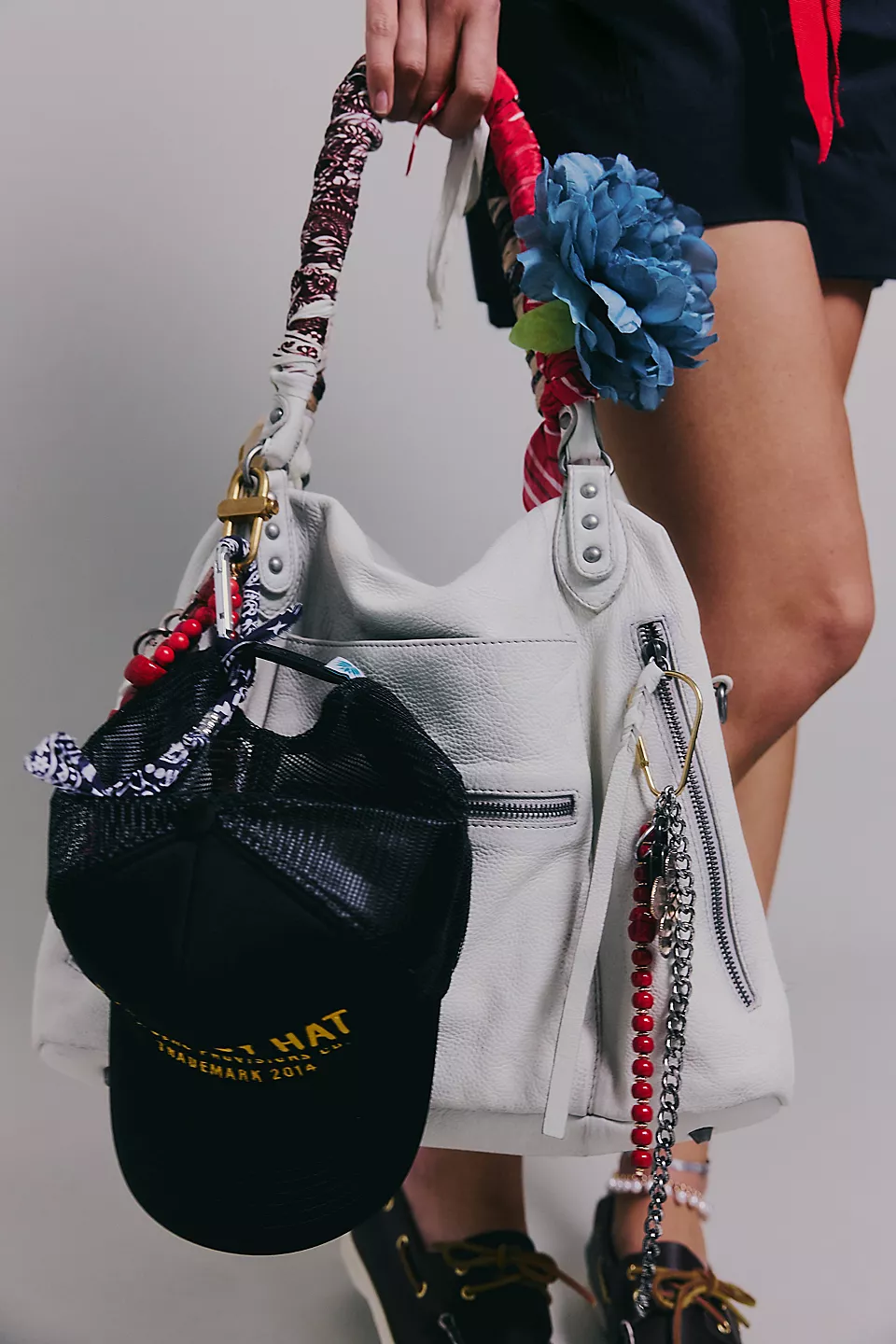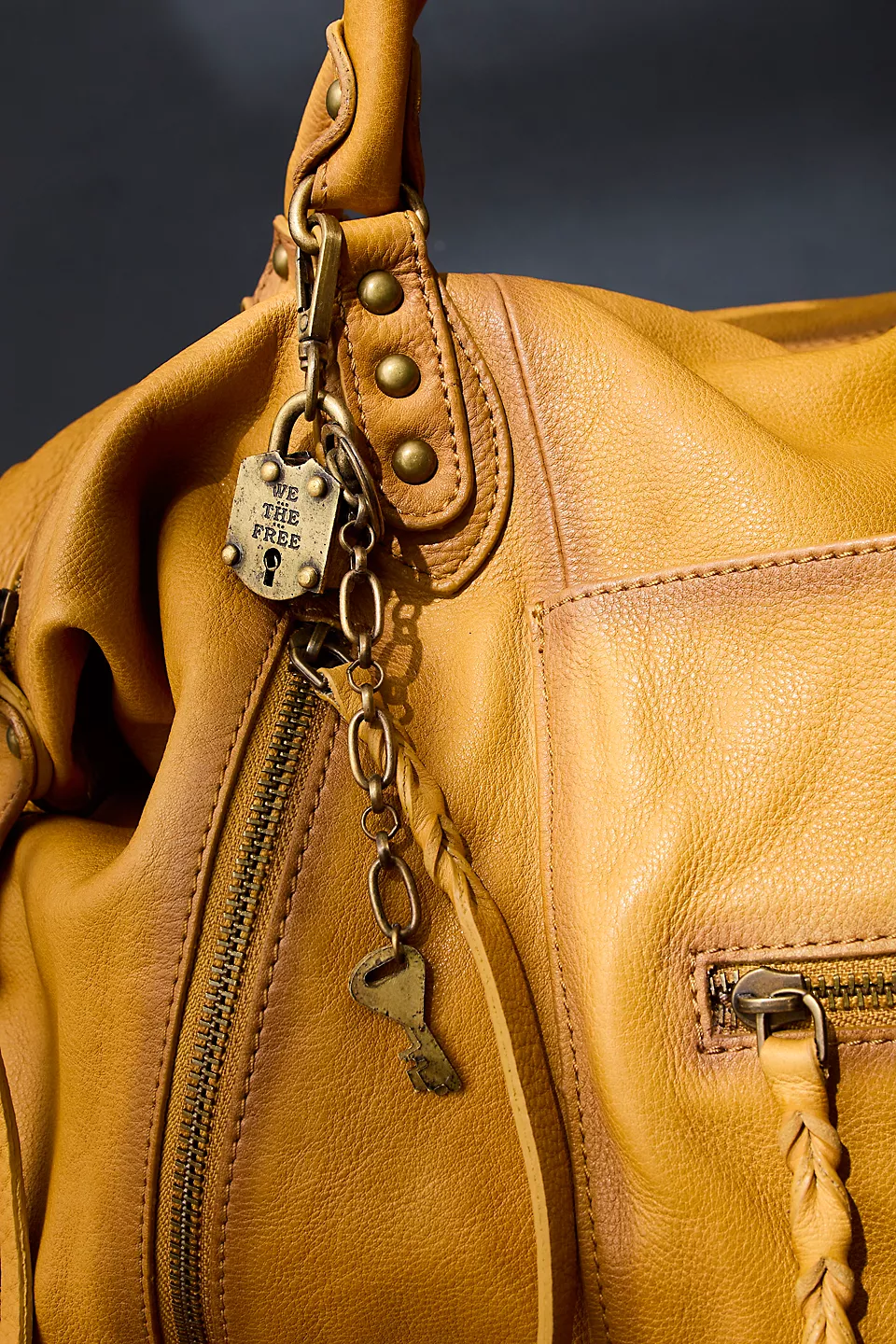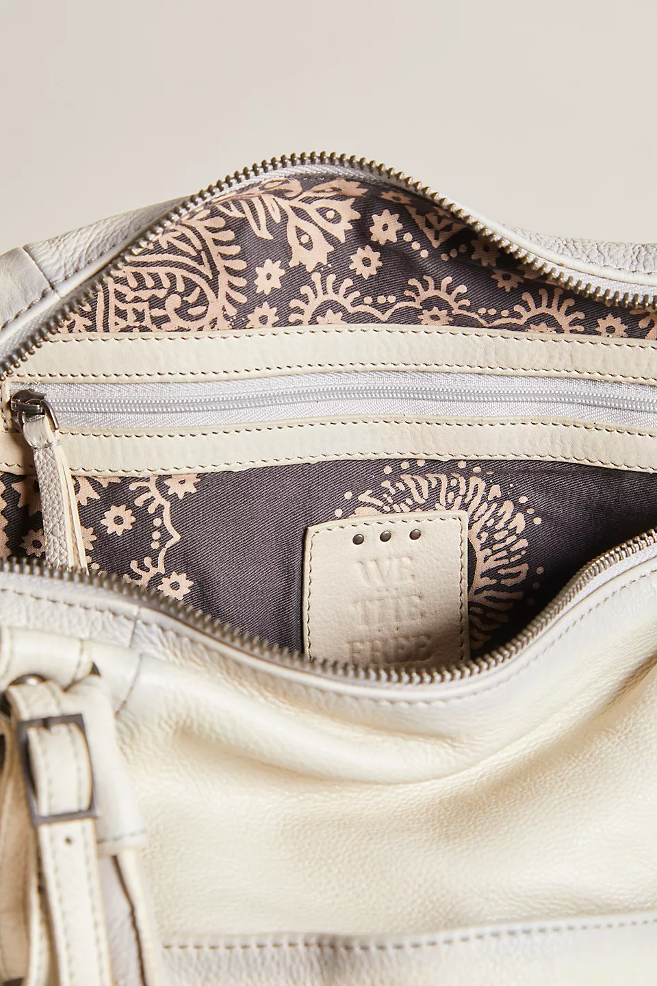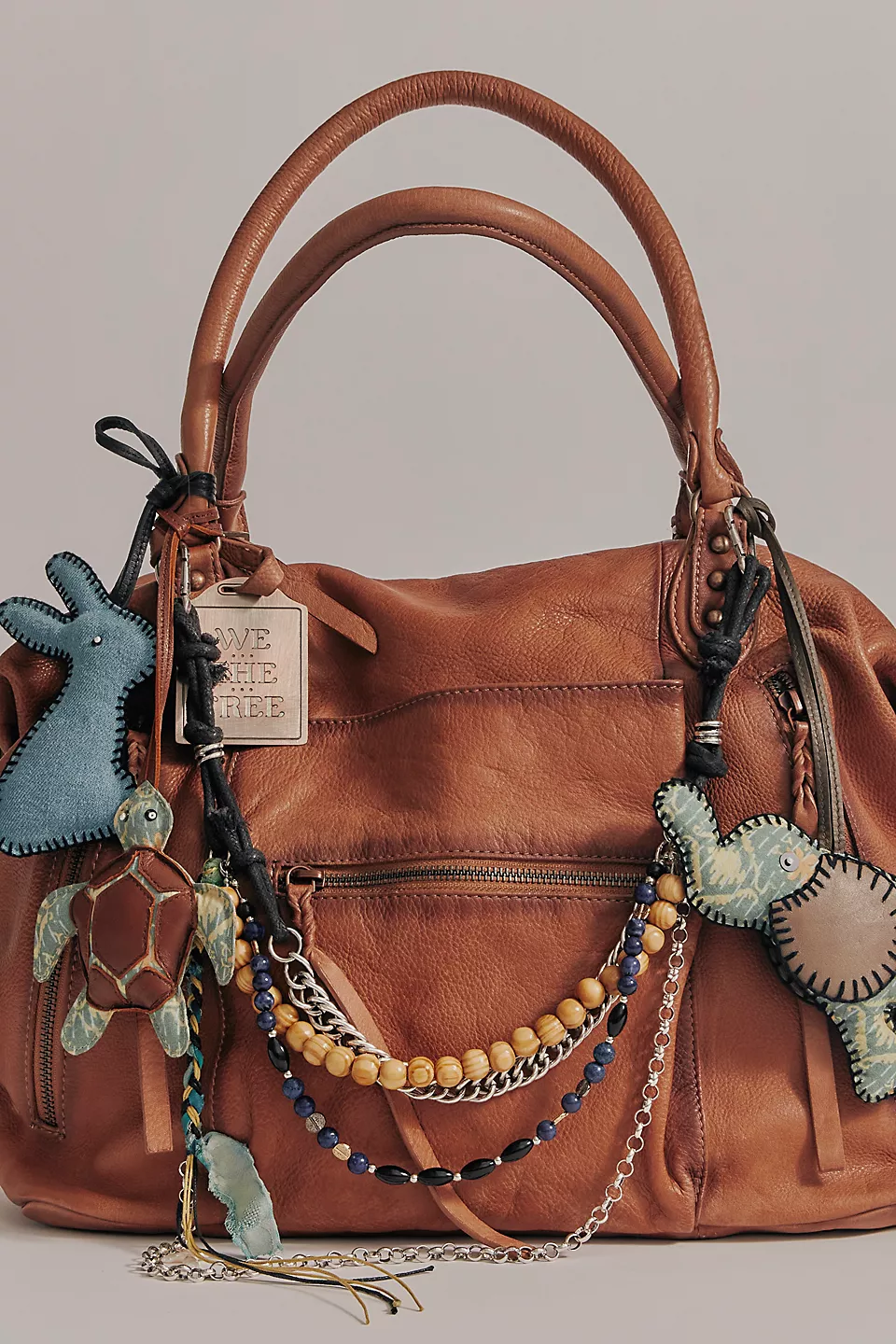 Features: Slouchy style, spacious interior, worn leather fabrication, exterior zipper compartments, exterior and interior pockets, buckle details, two top handles, detachable and adjustable shoulder strap, zipper closure, branded tag