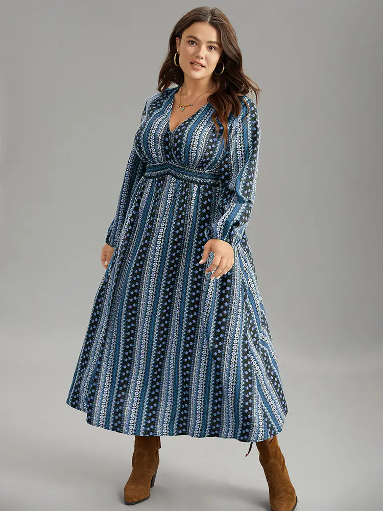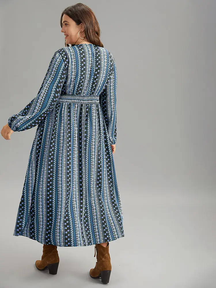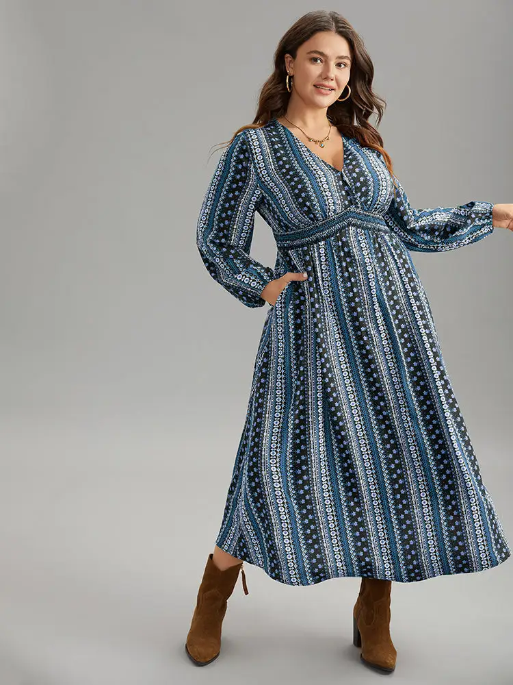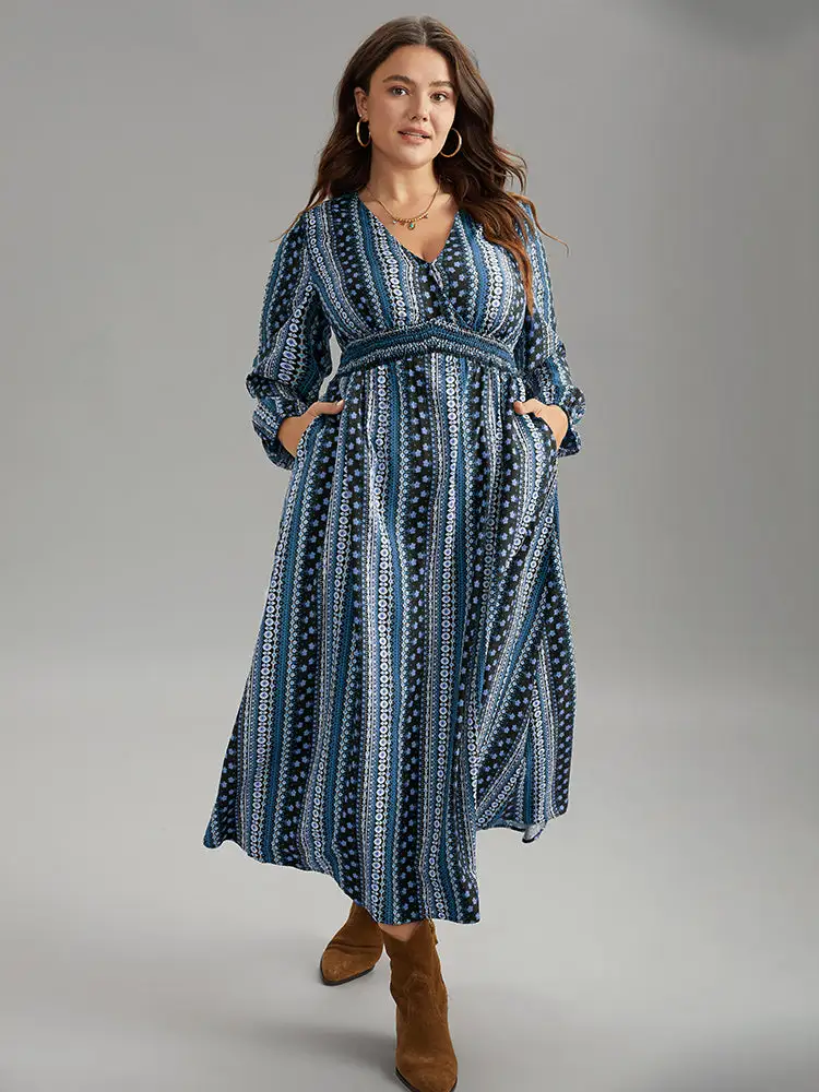 Details:Pocket, Shirred, Button, Elastic Waist, Printed, Elastic cuffs