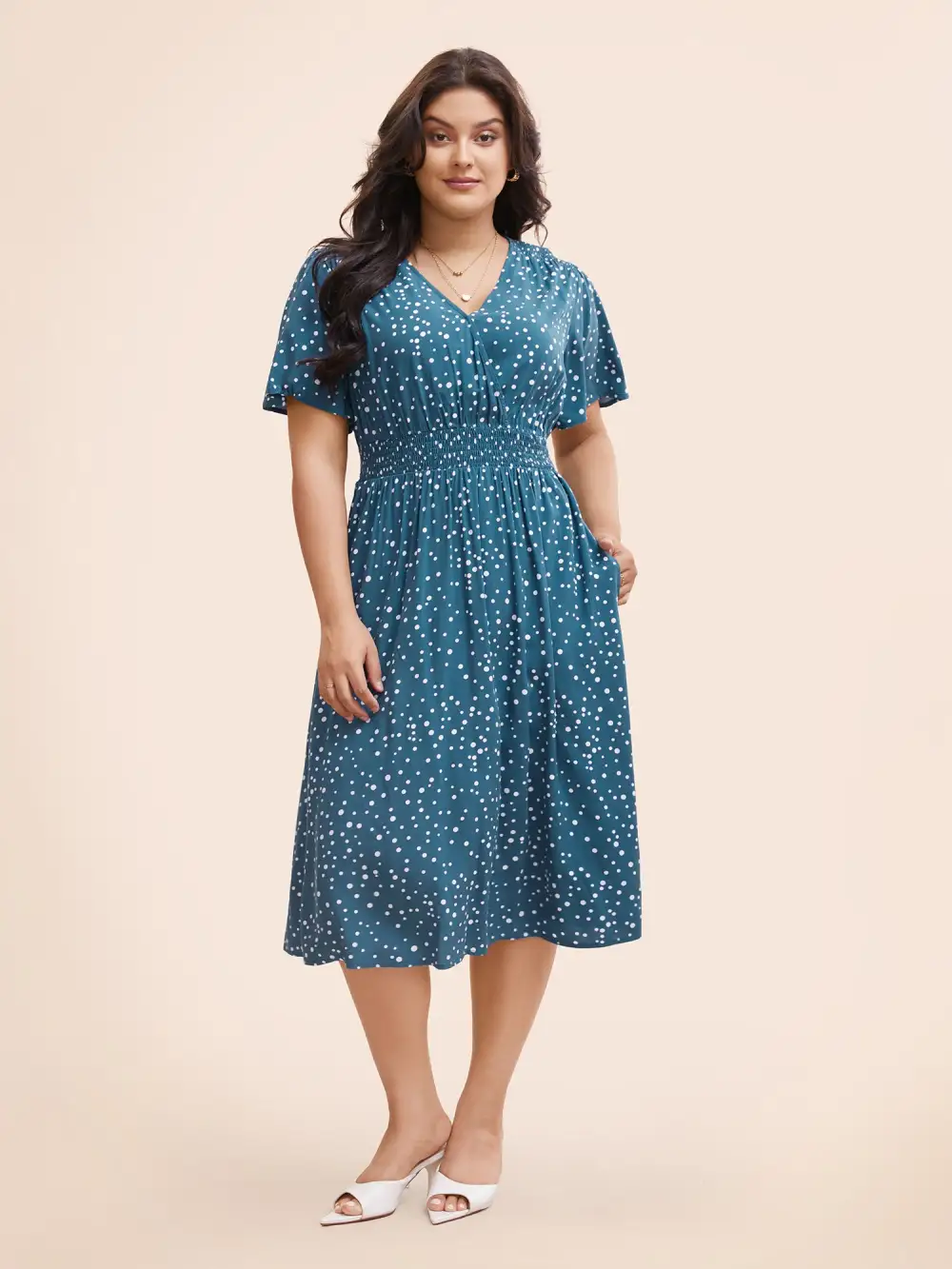 Details:Ruffles, Shirred, Pocket, Elastic Waist, Patchwork
